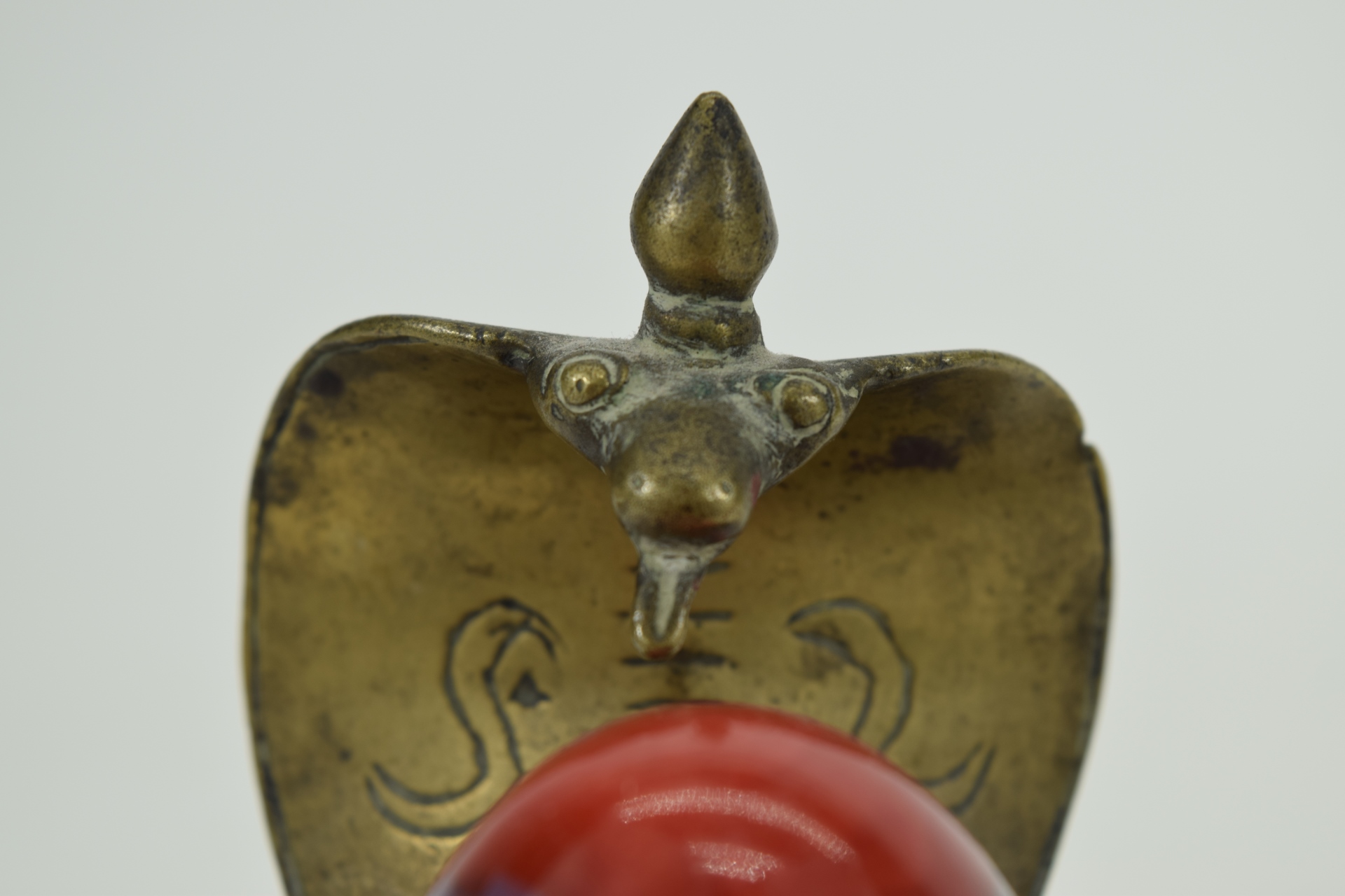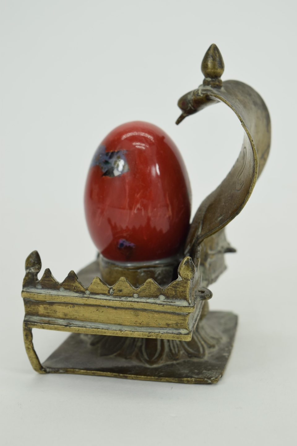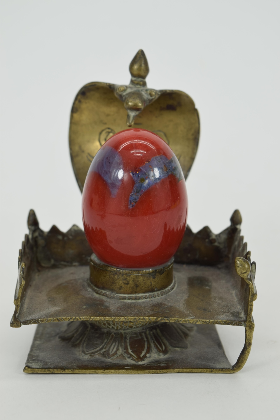 Red onyx egg. Circa 18th C. Measures 3-3/4” L x 4-3/4” H x 3-1/4” D. Weighs 16.5 OZ.