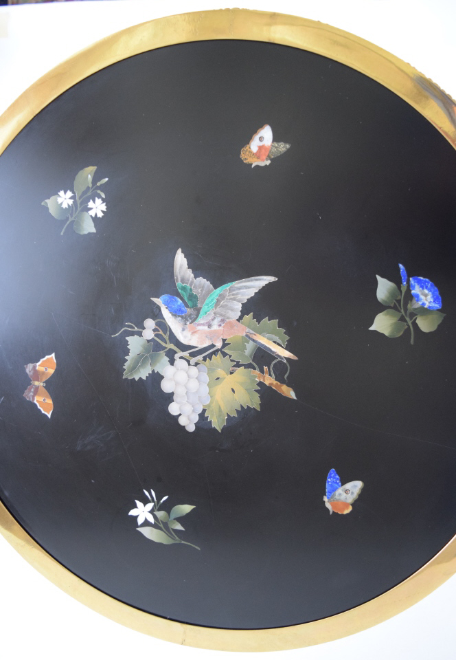 110 - ANTIQUE PIETRA DURA MOSAIC BIRD & BUTTERFLY TABLE