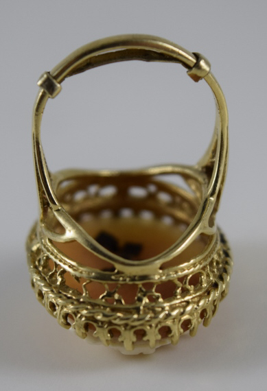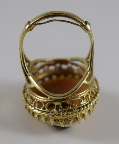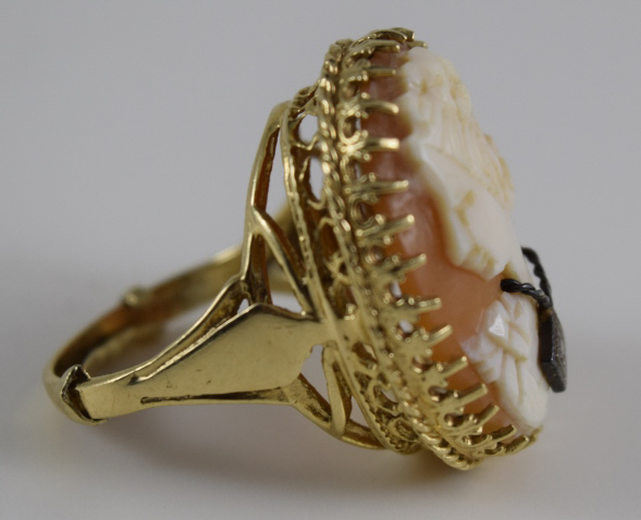 112 - VICTORIAN CARVED CAMEO RING 14K GOLD w/ DIAMOND