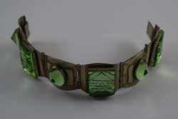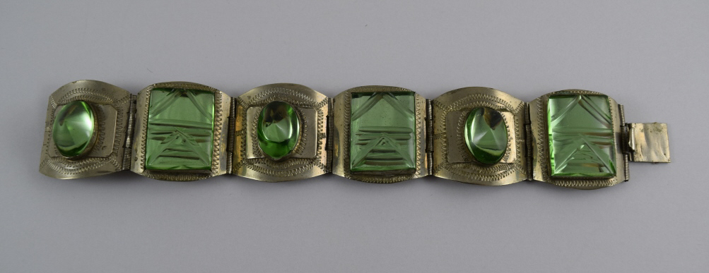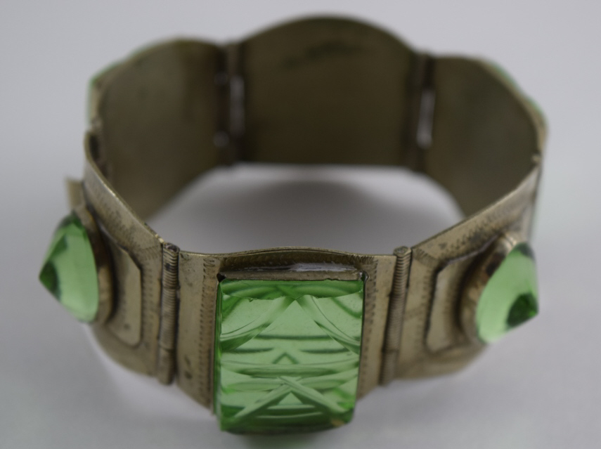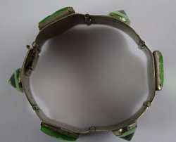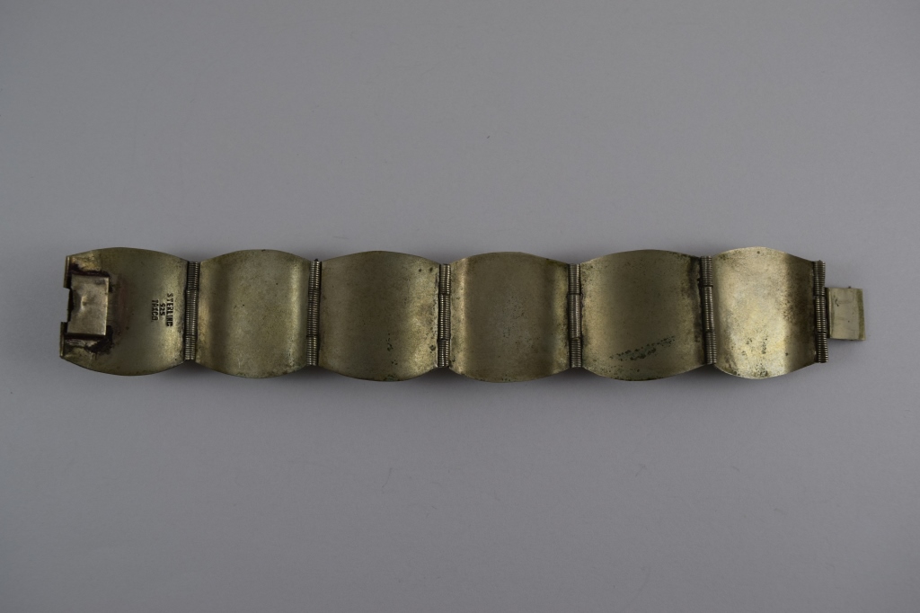 Six cut and fitted stones. Hallmarked “Sterling”, “925”, and "Taxco”. Measures 7” (17.78 cm) inner circumference x 1 3/16” (3cm) at its widest. Weighs 56.8g (1.8 ounces troy). U.S. SHIPPING $15 PLUS INSURANCE
