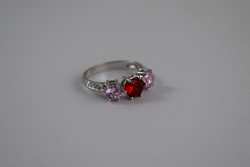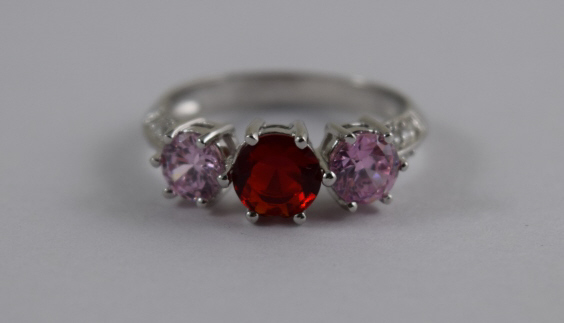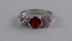 126 - STERLING SILVER RUBY PINK SAPPHIRE TOPAZ RING