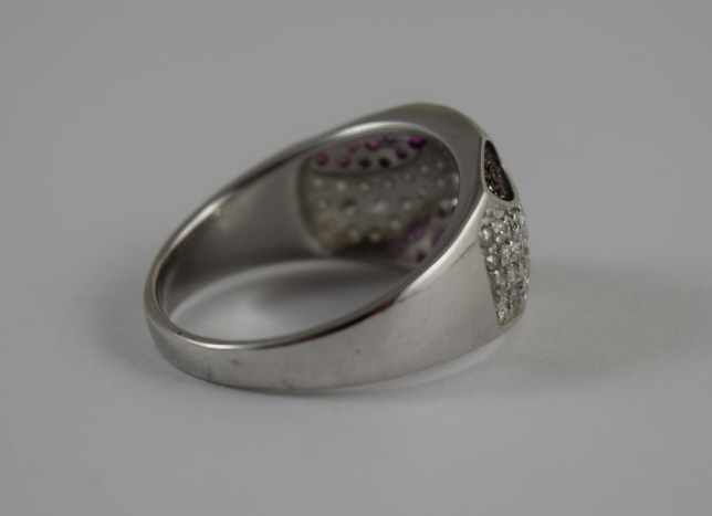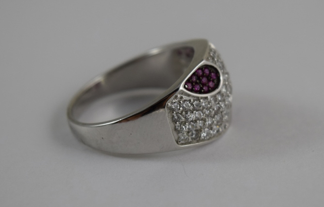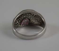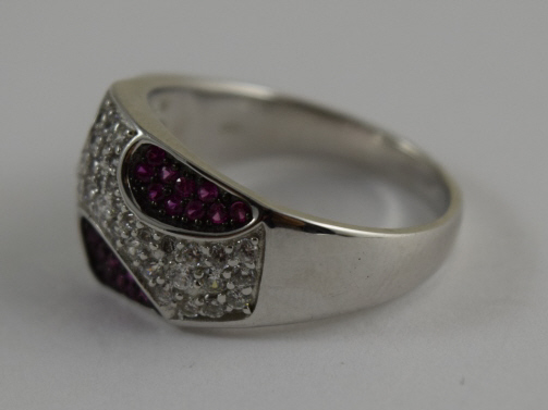 Beautiful ring, predominately white topaz with splashes of rubies. Hallmarked "925". Size 9. Weighs 5.1g. U.S. SHIPPING $15 PLUS INSURANCE