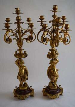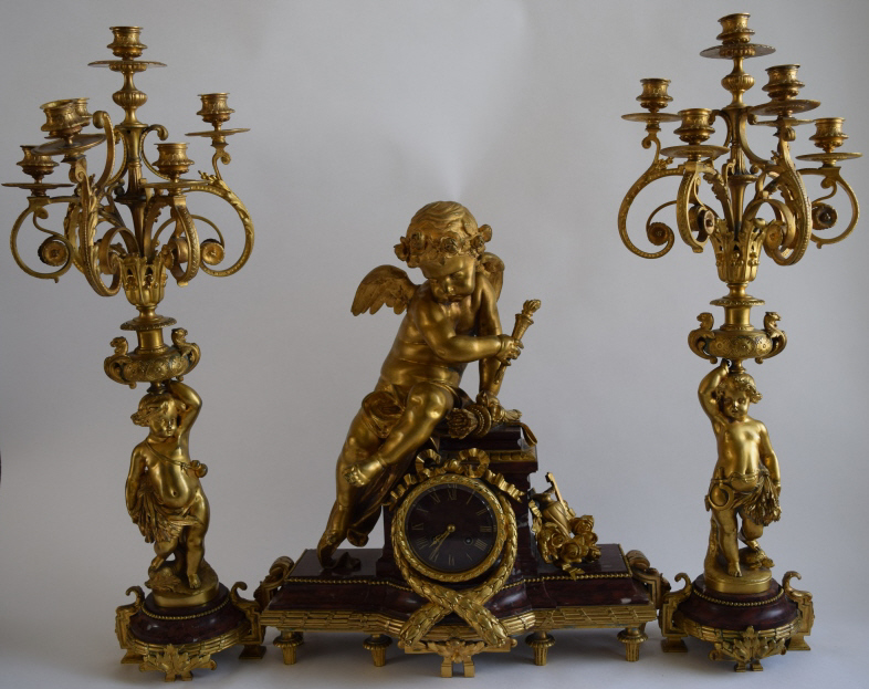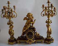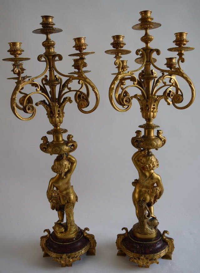 Candelabra measures 30" (76.2cm) high x 10" (25.4cm) wide, each consists of two pieces. Clock measures 20" (50.8cm) high x 20" (50.8cm) wide. THIRD PARTY SHIPPING REQUIRED. Please familiarize yourself with yourpickup/shipping/freight options PRIOR to placing a bid.