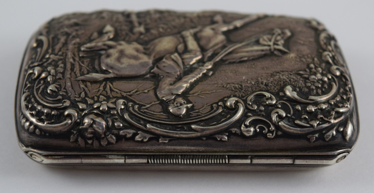 134 - ANTIQUE R. WALLACE EQUESTRIAN REPOUSSE 925 SNUFF