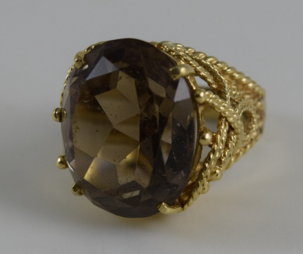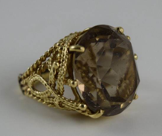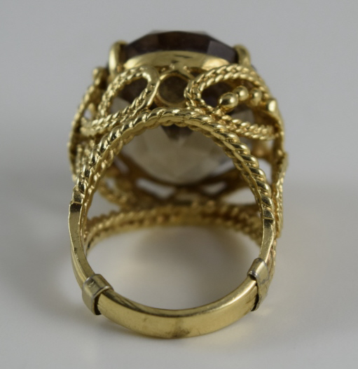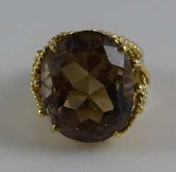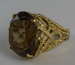 136 - VINTAGE 14K GOLD w/ LARGE SMOKY QUARTZ LADIES RING