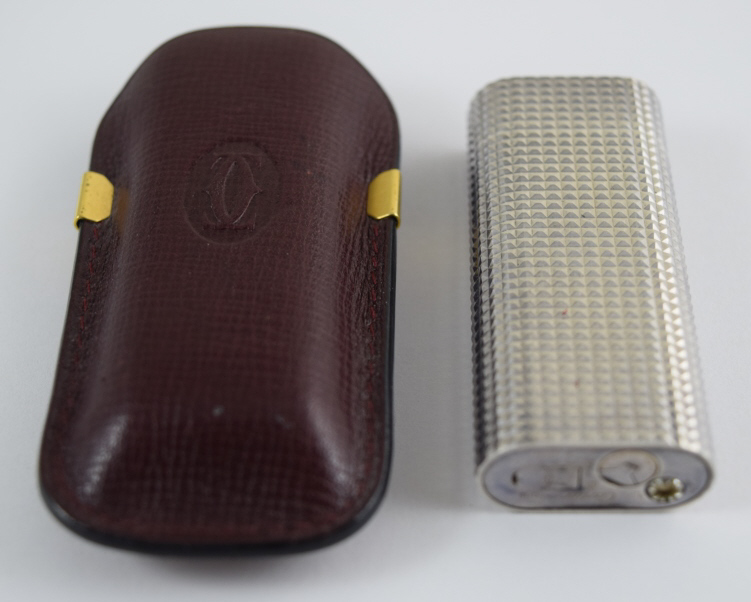 138 - CARTIER PARIS ENGINE TURNED SILVER LIGHTER w CASE