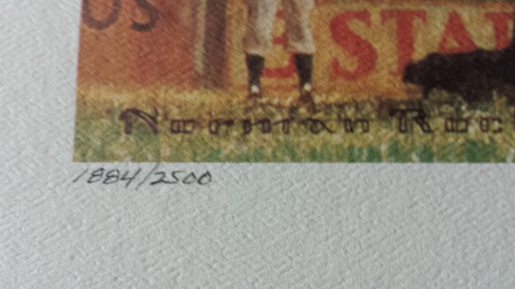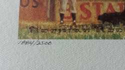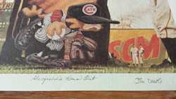 Garfield meets Norman Rockwell "Garfield's Rain Out". Offset lithograph in color on wove paper. Hand signed, titled and numbered in pencil by Jim Davis. From the limited edition of 2500. Certificate of authenticity andappraisal included (appraised value $295). Measures 14 1/2" (36.8cm) high x 13 1/2" (34.3cm) wide. Purchased new and has been stored loosely rolled in a wide tube ever since. THIRD PARTY SHIPPING REQUIRED.