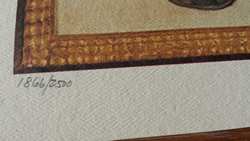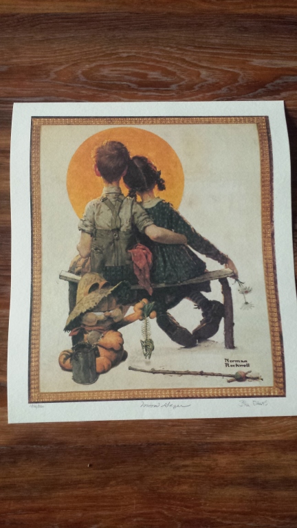 Garfield meets Norman Rockwell "Moon Gazer". Offset lithograph in color on wove paper. Hand signed, titled and numbered in pencil by Jim Davis. From the limited edition of 2500. Certificate of authenticity and appraisalincluded (appraised value $295). Measures 15" (38.1cm) high x 13" (33cm) wide. Purchased new and has been stored loosely rolled in a wide tube ever since. THIRD PARTY SHIPPING REQUIRED.