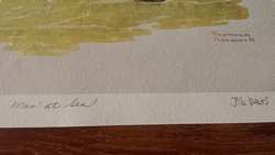 Garfield meets Norman Rockwell "Man at Sea". Offset lithograph in color on wove paper. Hand signed, titled and numbered in pencil by Jim Davis. From the limited edition of 2500. Certificate of authenticity and appraisalincluded (appraised value $295). Measures 19 3/4" (50.2cm) high x 15" (38.1cm) wide. Purchased new and have been loosely rolled in a wide tube ever since.