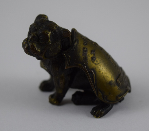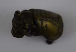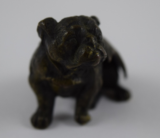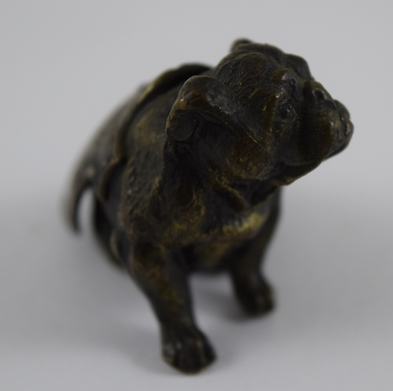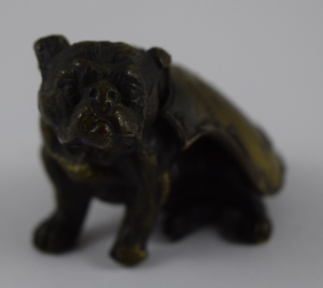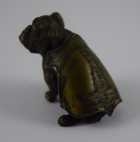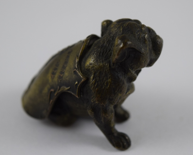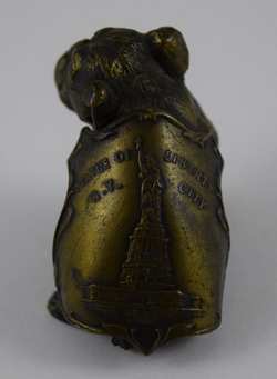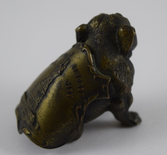 Heavy bulldog sporting a shield on it's back that reads “Statue of Liberty N.Y. City” with Lady Liberty, in all her majesty. Measures 1 1/2” (3.81cm) long x 1 1/4” (3.17cm) high x 3/4” (1.9cm) wide. Weighs 2.9oz. U.S.SHIPPING $15 PLUS INSURANCE