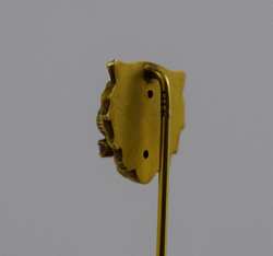 159 - 10K GOLD LION HEAD PIN RUBY EYES DIAMOND IN MOUTH