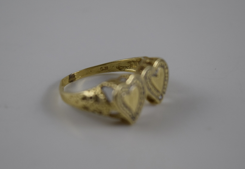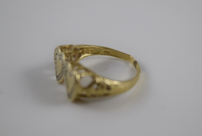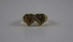 162 - 14K GOLD TWO HEARTS LOVERS OR BEST FRIENDS RING