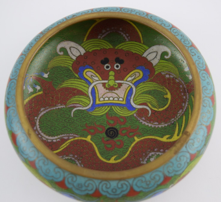 Dragon dish measures 5 1/2" (13.9cm) wide. Floral bowl measures 4 1/2" (11.4cm) wide. Butterfly jar measures 3" wide (7.6cm) wide. Total weight 1lbs., 4oz. THIRD PARTY SHIPPING REQUIRED
