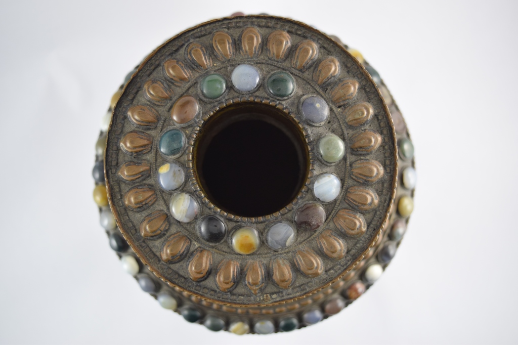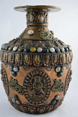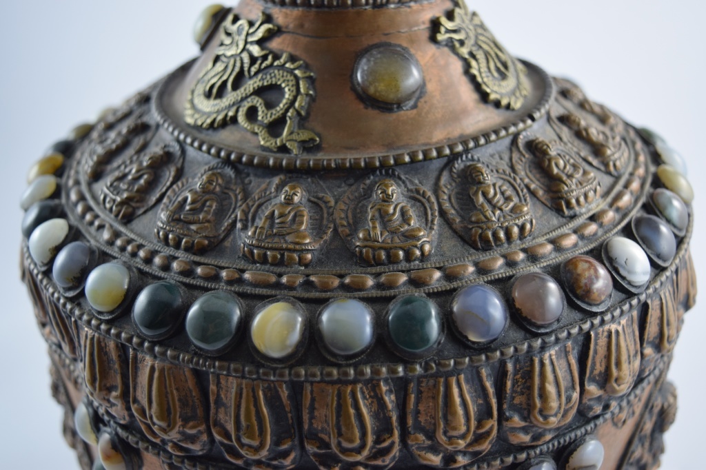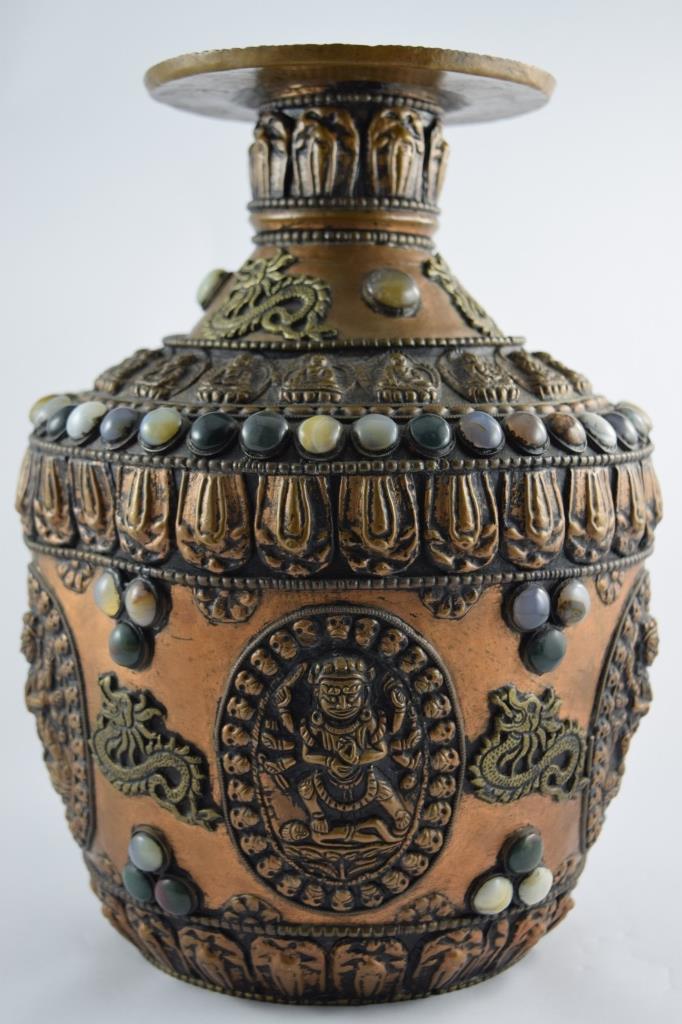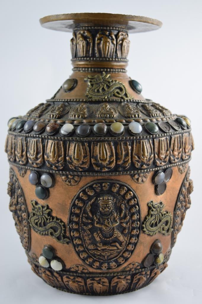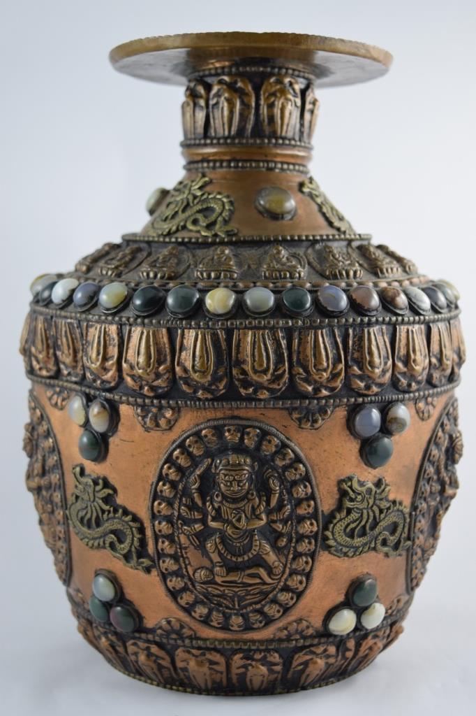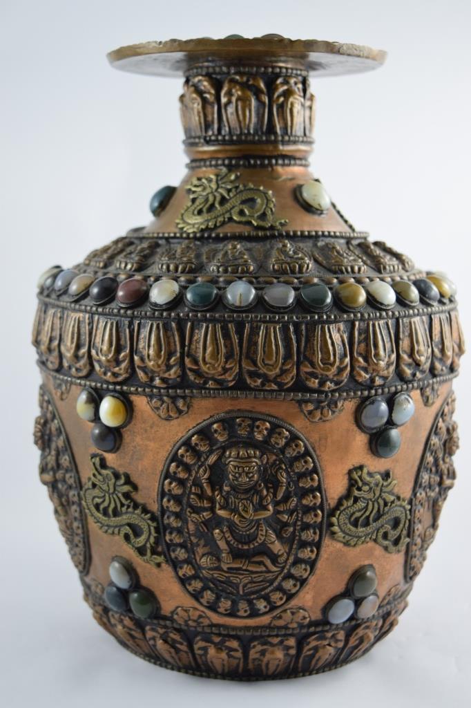 163 - BRONZED COPPER JEWELED DRAGON BUDDHA HINDU VASE