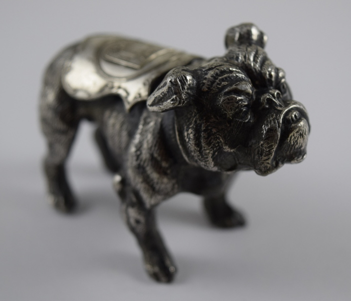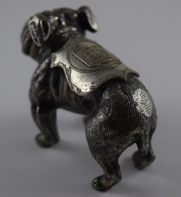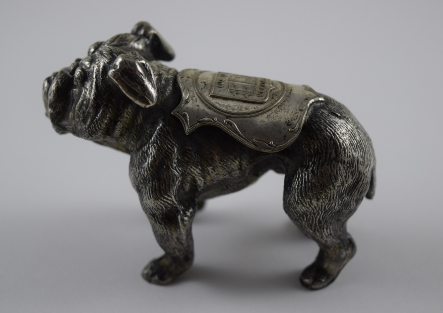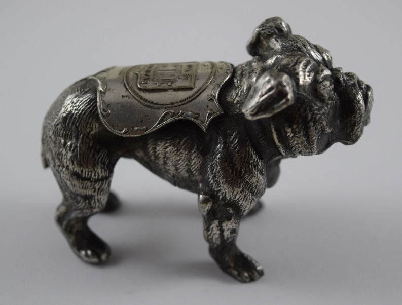 173 - VINTAGE YALE SILVERPLATE BRONZE BULLDOG FIGURE