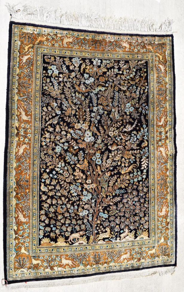 180 - ANTIQUE PERSIAN QOM (QUM) SILK "TREE OF LIFE" RUG