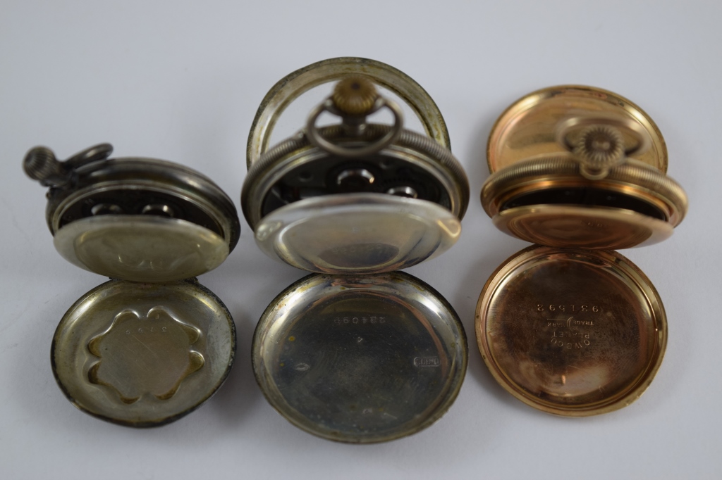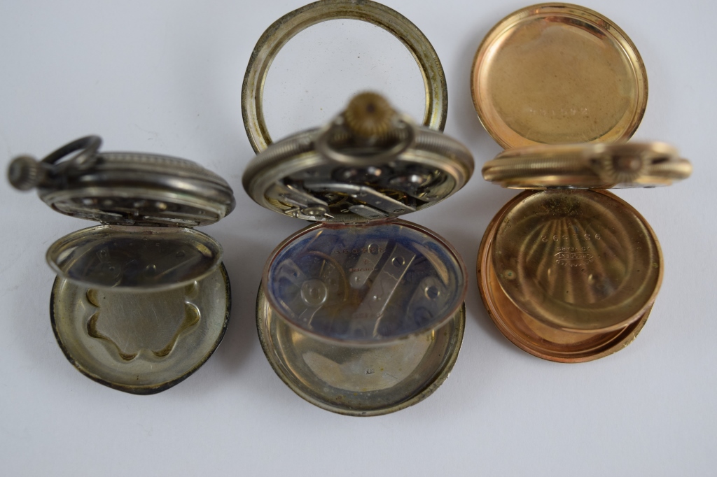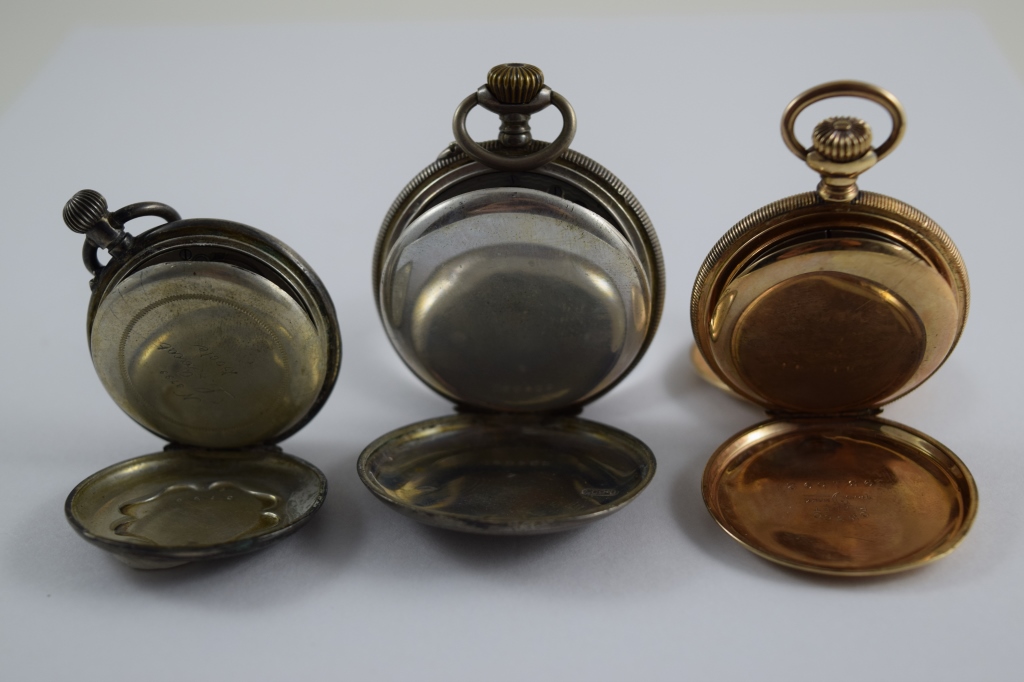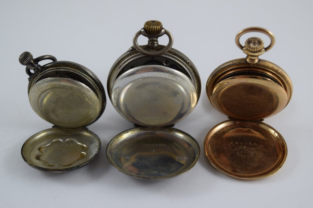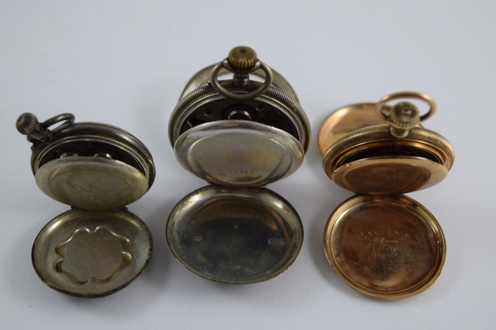 183 - LOT OF 3 SILVER & GOLD OVER SILVER POCKET WATCHES