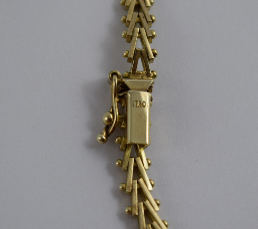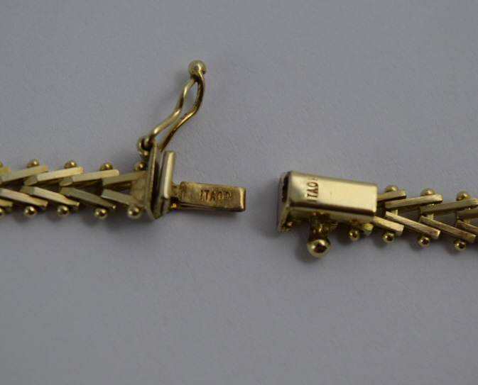 Hallmarked "925", "Italy", and "Tao or itao". Measures 17" (43.1cm) long. Width ranging from just shy of a 1/4" (5mm) to 1 1/2" (3.8cm). Weighs 37.1g. U.S. SHIPPING $15 PLUS INSURANCE