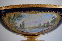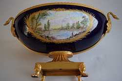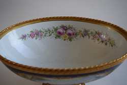 Cobalt compote with heavy gold. Artist Signed. Measures 19" (48.2cm) long x 10" (25.4cm) wide x 10" (25.4cm) high. Weighs 5lbs. THIRD PARTY SHIPPING REQUIRED.