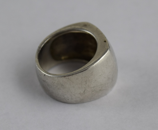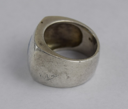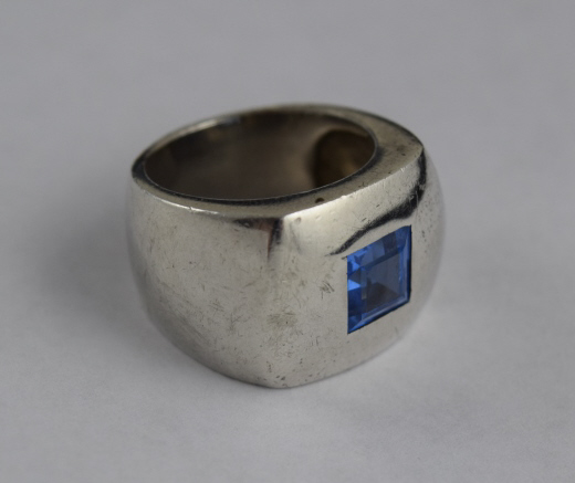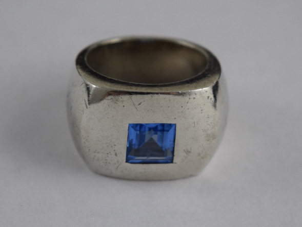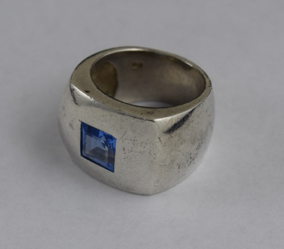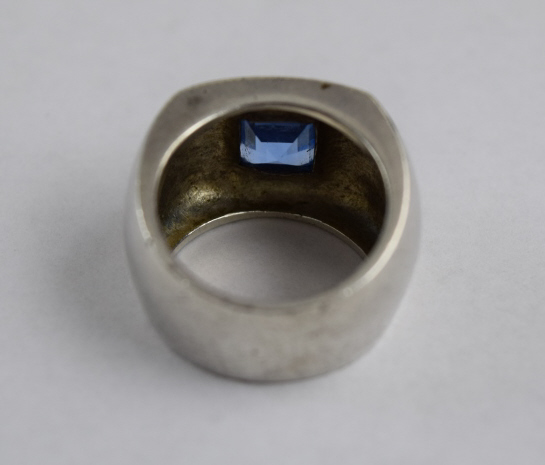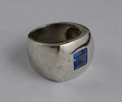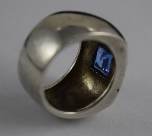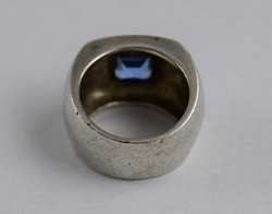 213 - HEAVY STERLING SILVER RING MODERNE RING BLUE STONE