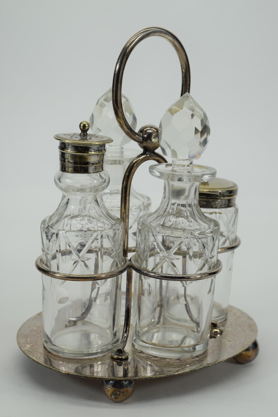 214 - ANTIQUE JT&CO SILVERPLATE CRUET SET