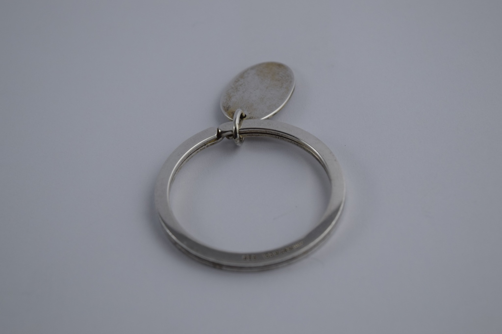 Blank tag (not monogrammed). Hallmarked "Tiffany & Co." and "925". Measures 1 3/4" (4.4cm) in diameter, not including tag. Weighs 18.5g. U.S. SHIPPING $15 PLUS INSURANCE