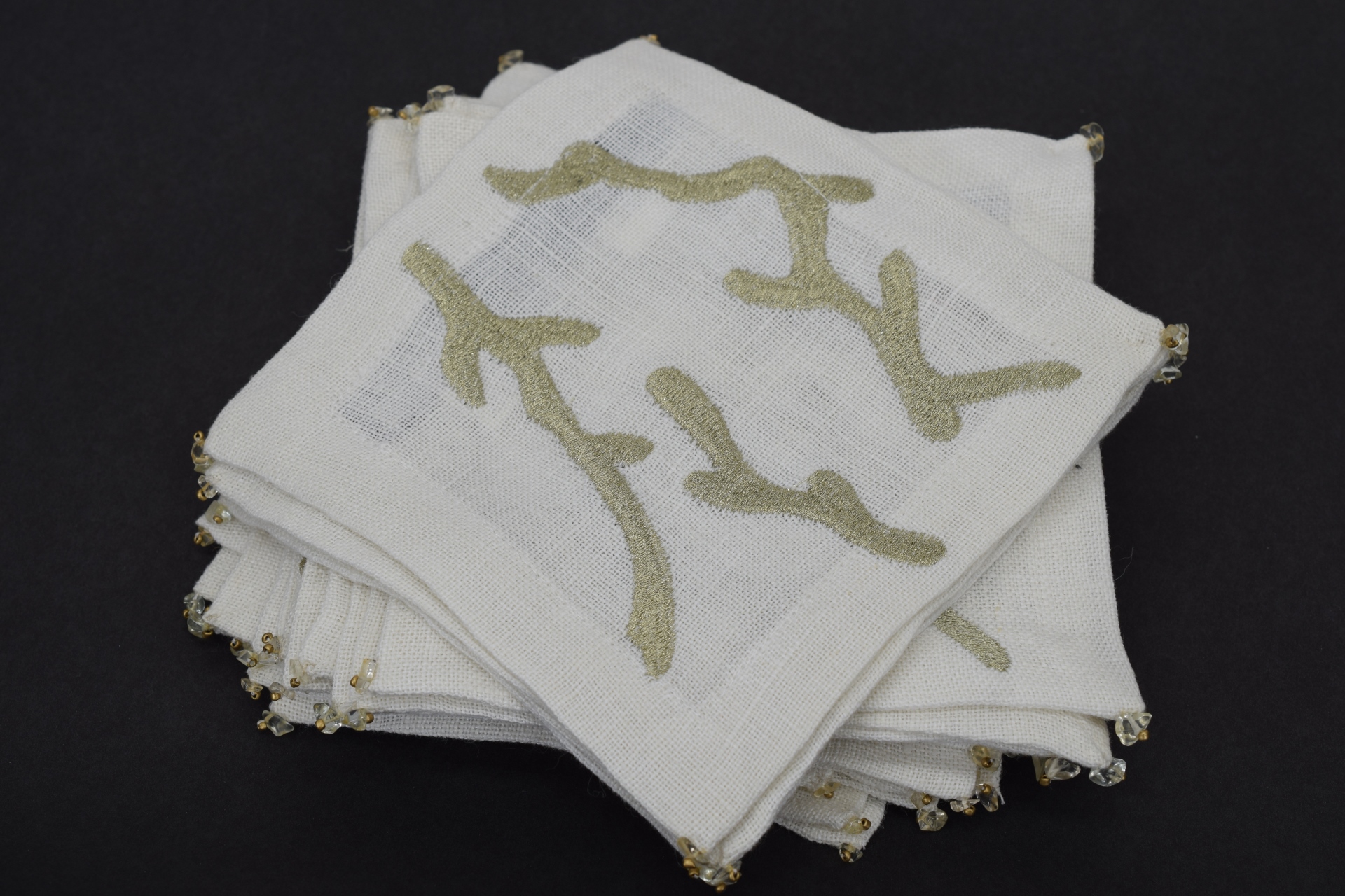 217 - KIM SEYBERT EMBROIDERED BEADED COCKTAIL NAPKINS