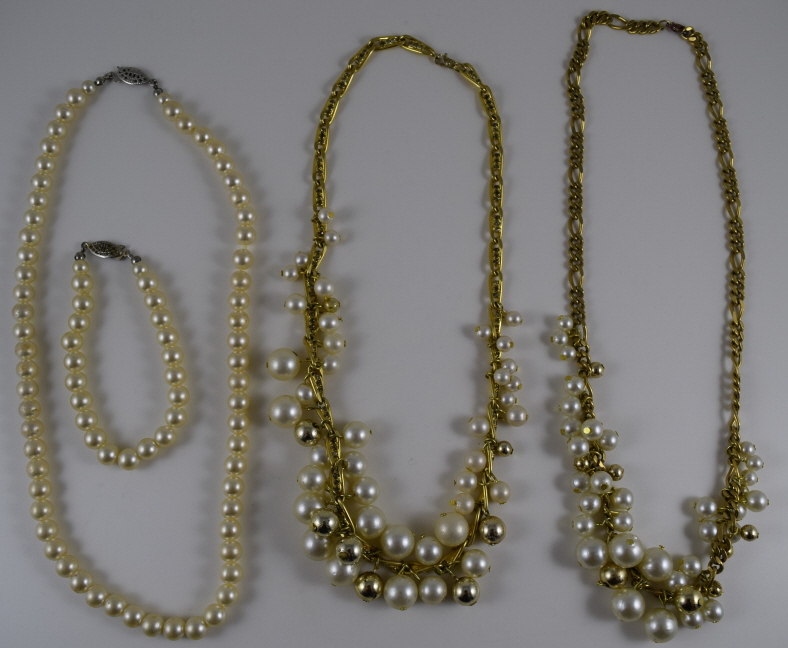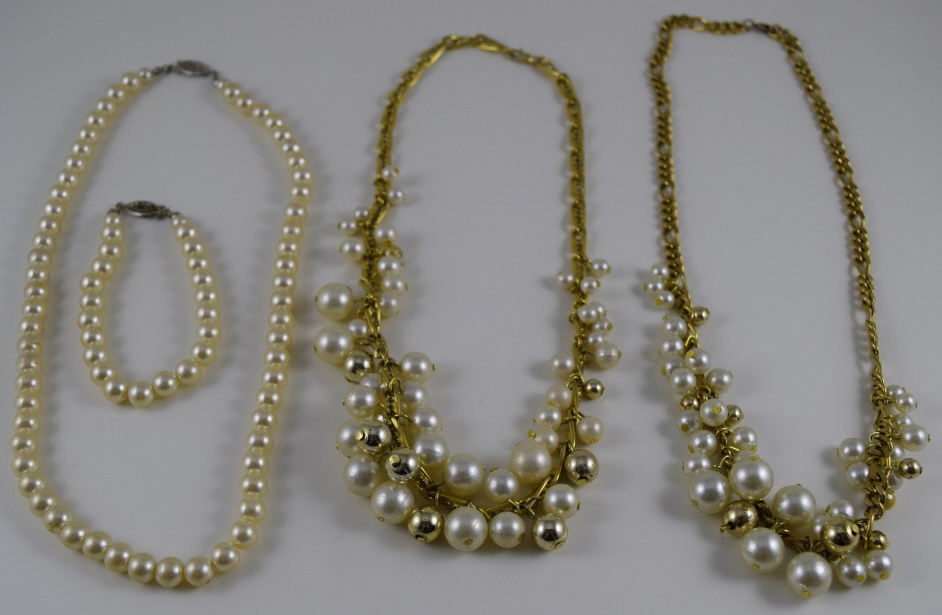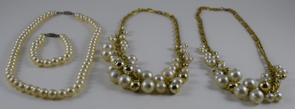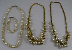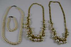 222 - VINTAGE COSTUME GOLD & PEARLS NECKLACES & BRACELET