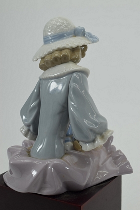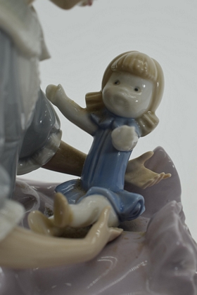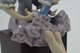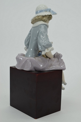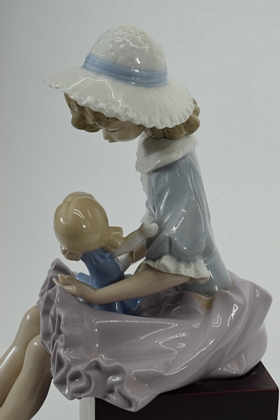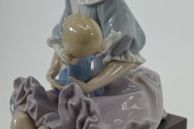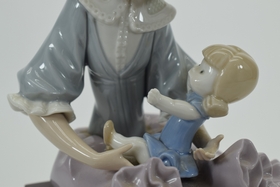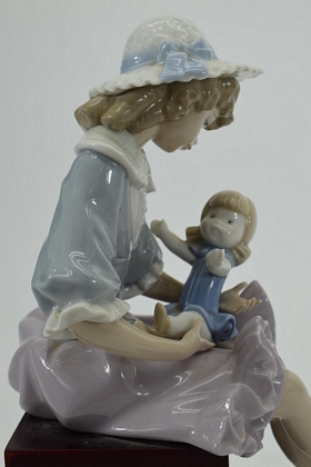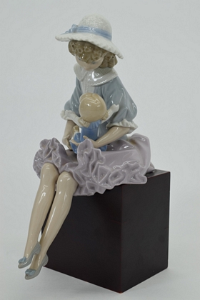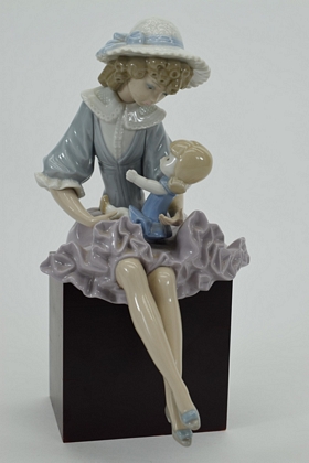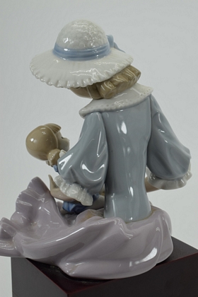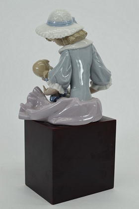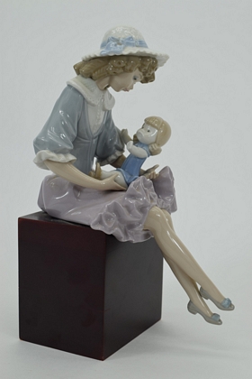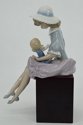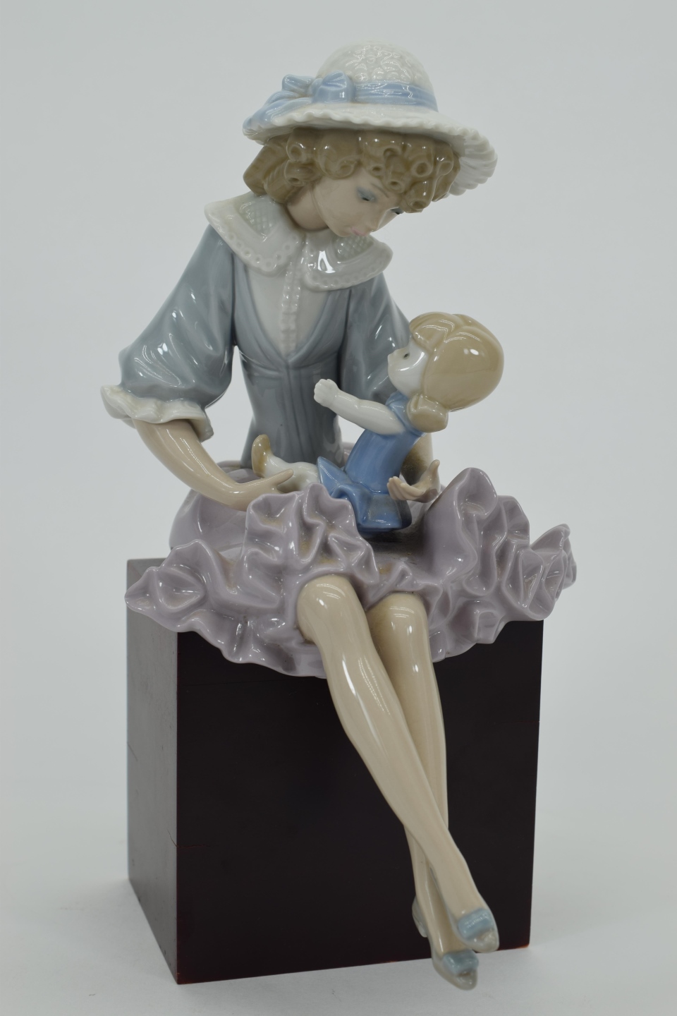 225 - LLADRO GIRL WITH CHILD ON WOODEN BOX