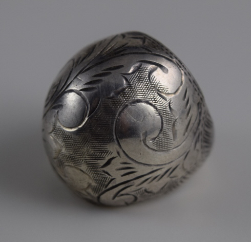 230 - VINTAGE STERLING SILVER BULBOUS ETCHED FLORAL RING