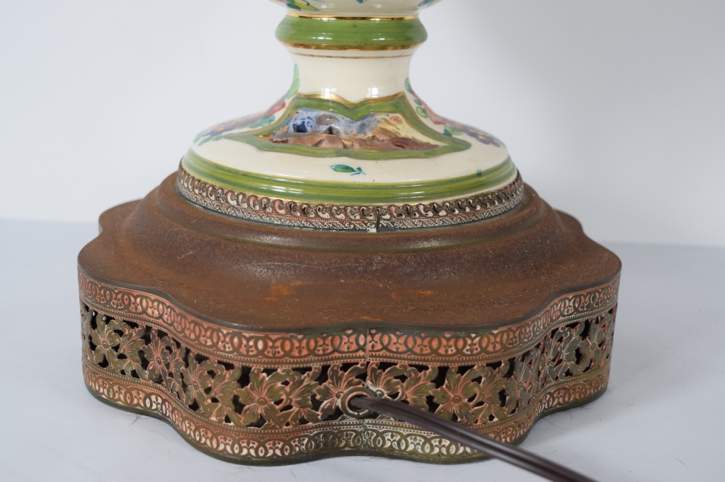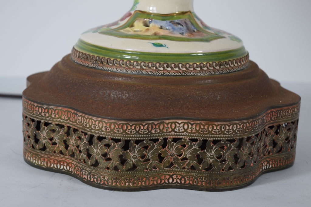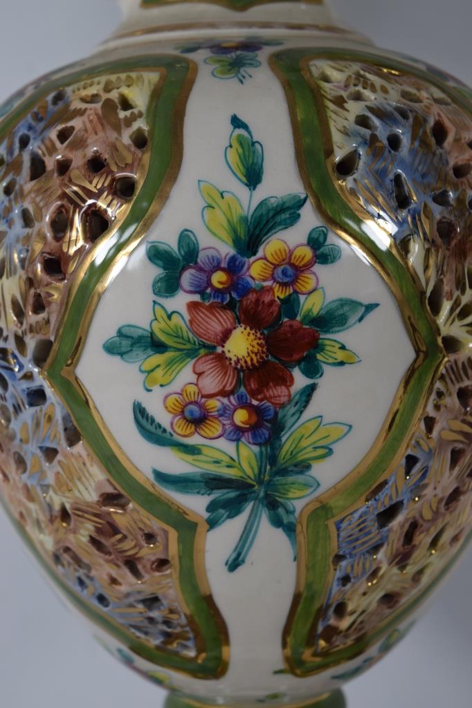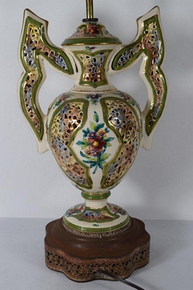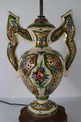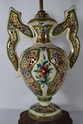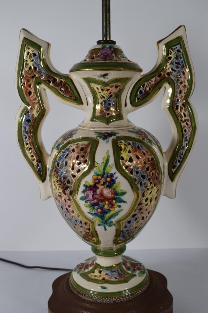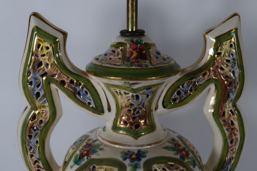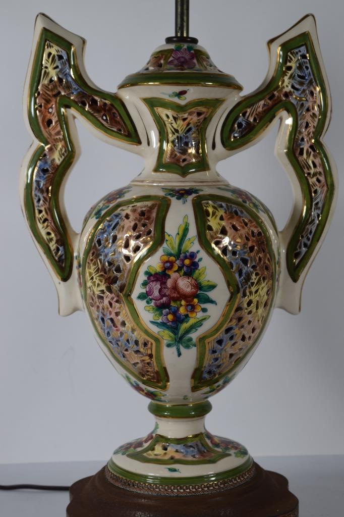 230 - ITALIAN PAINTED RETICULATED PORCELAIN URN LAMP