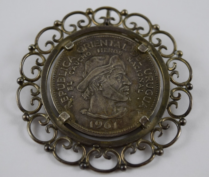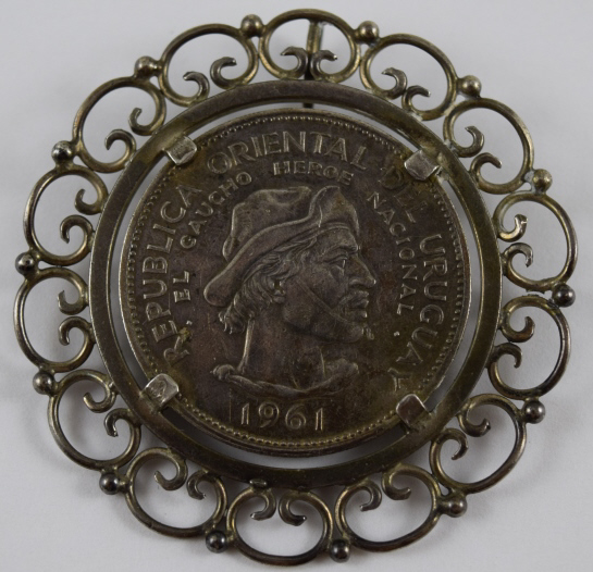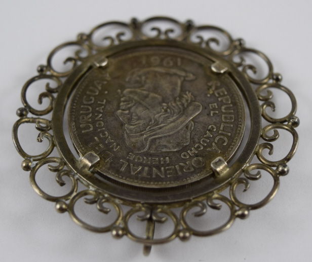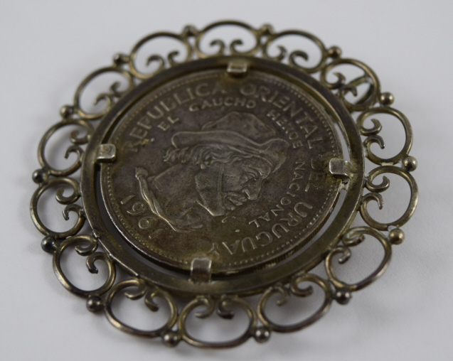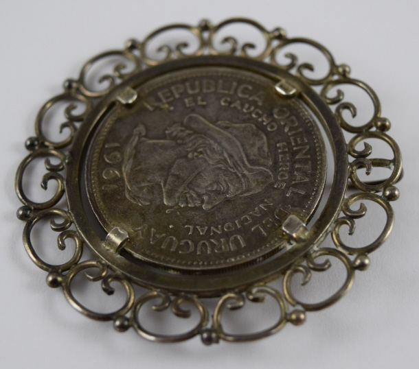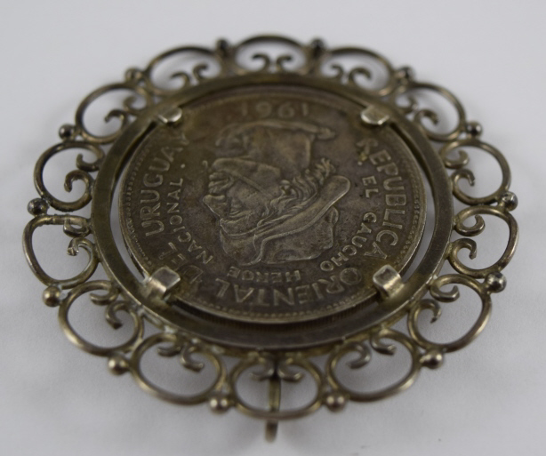236 - 1961 URUGUAY 10 PESOS COIN MEDALLION PENDANT
