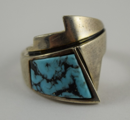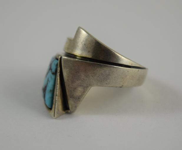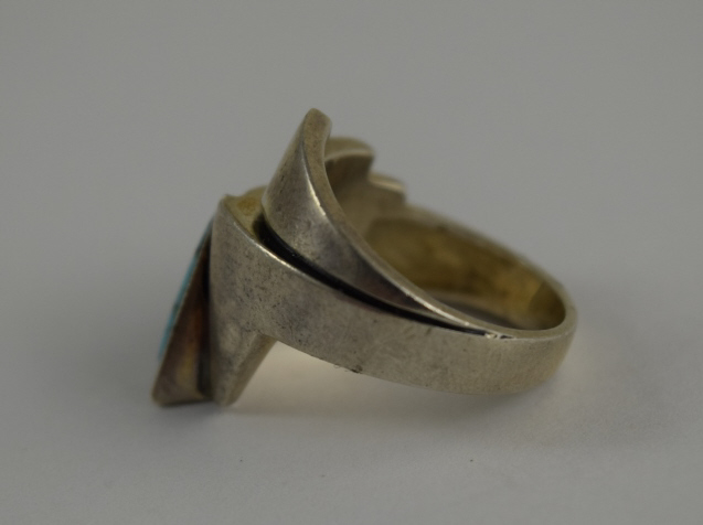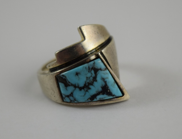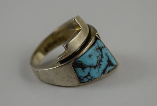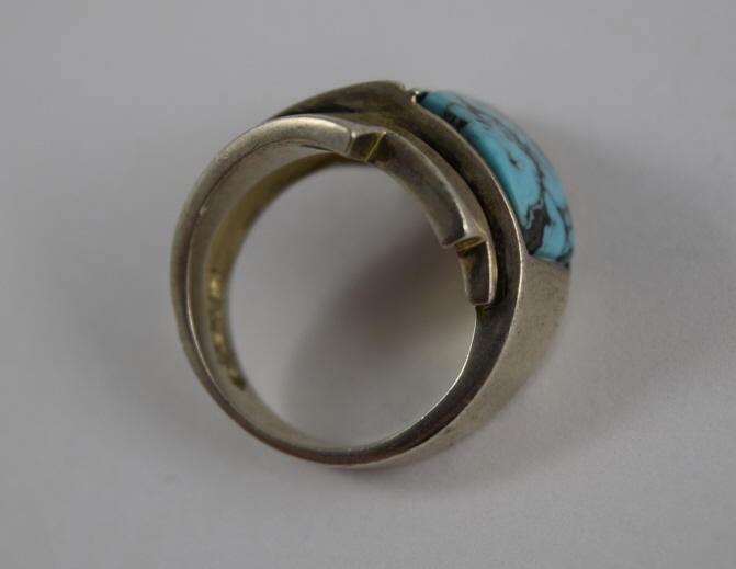 240 - MUNICH GERMANY STERLING SILVER DECO TURQUOISE RING