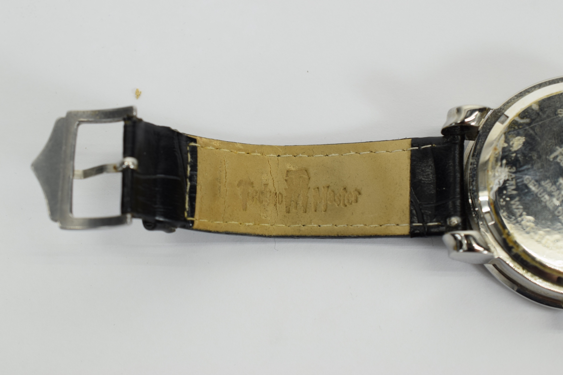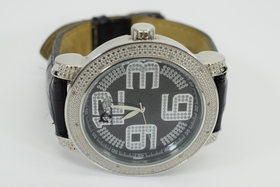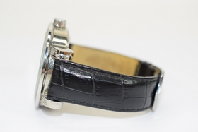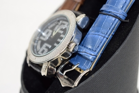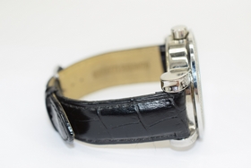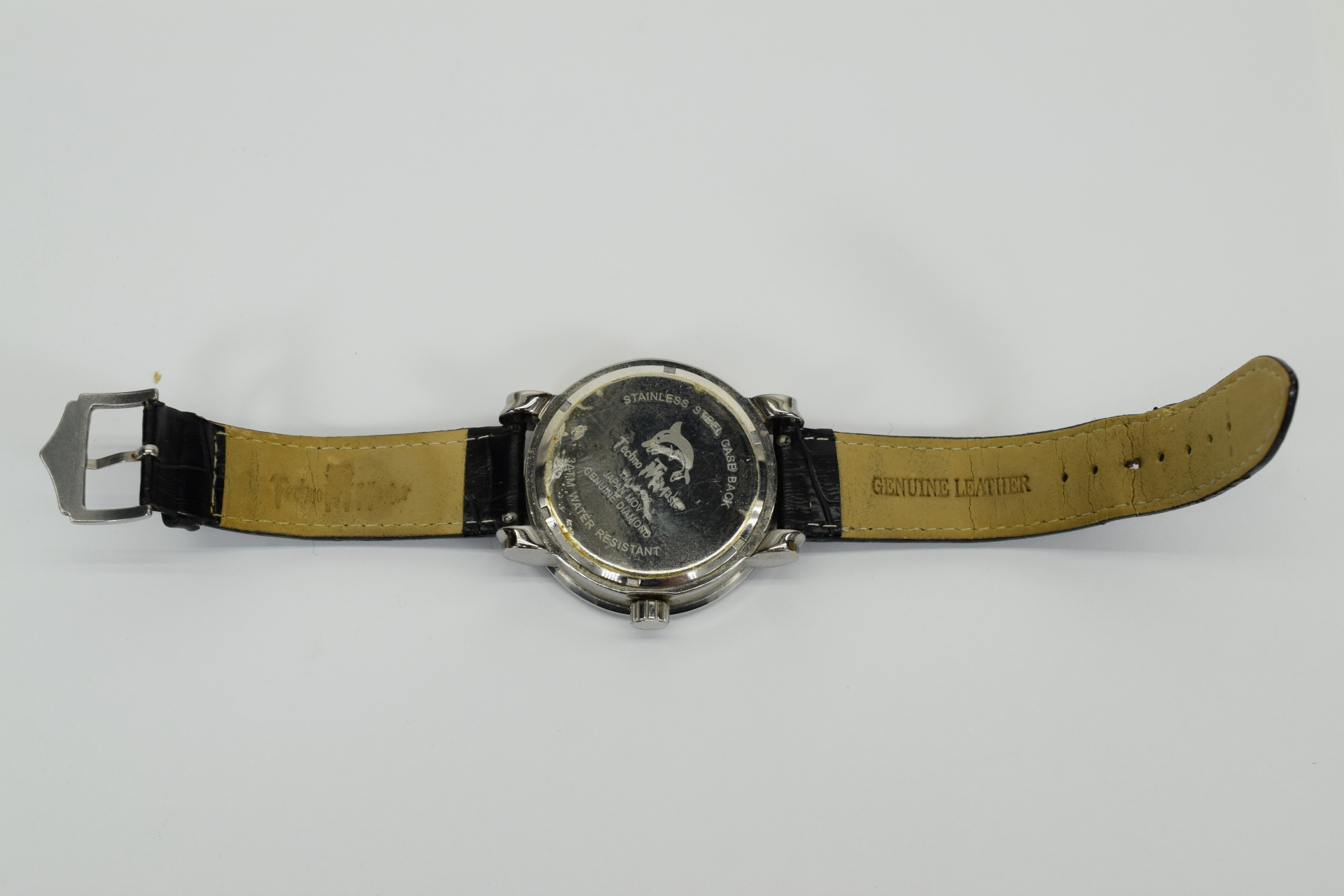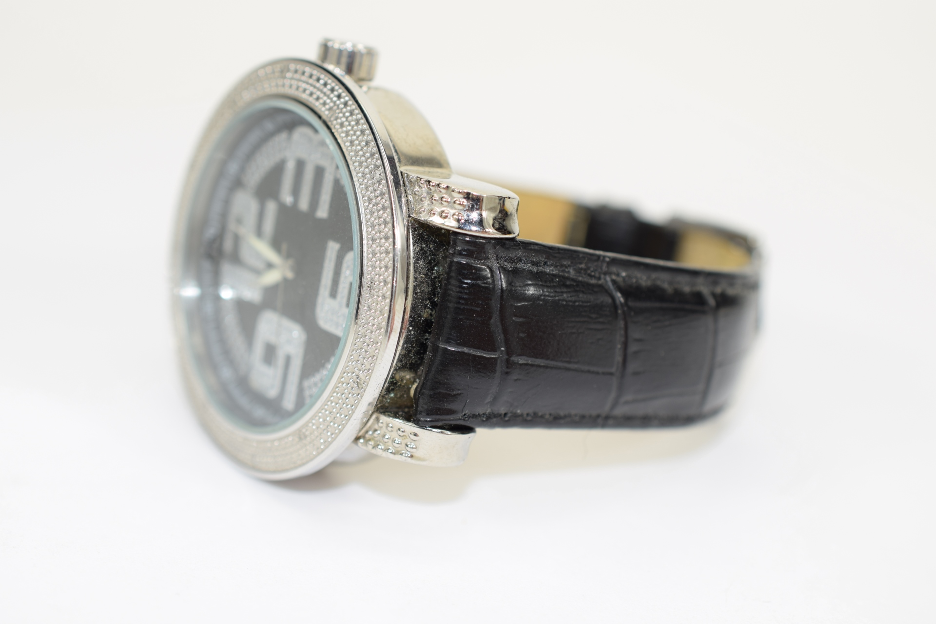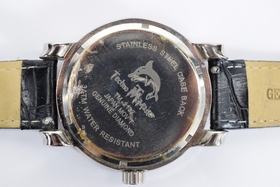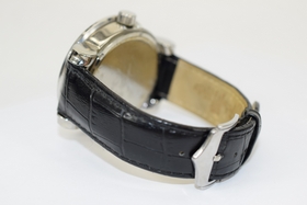 Stainless Steel Quartz Men's Watch. Comes in original presentation box with 2 extra bands/straps. Face measures approx. 2” diameter. Bands approx. 8-1/2” L (with buckle). Weighs approx. 12oz (in case).
