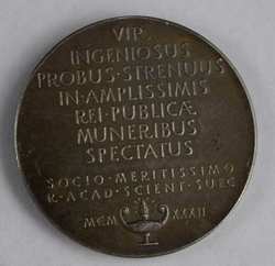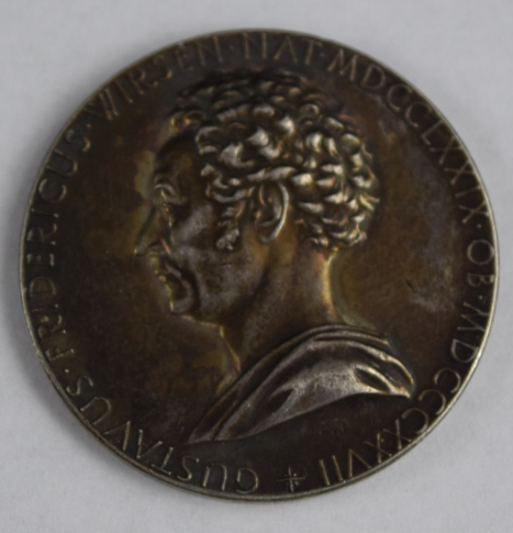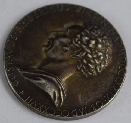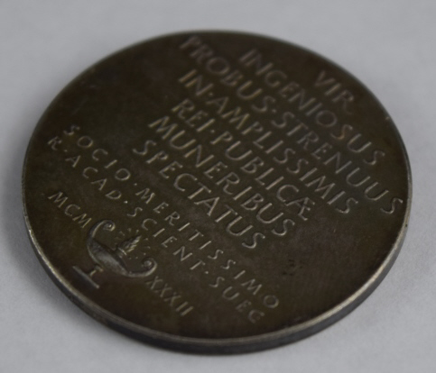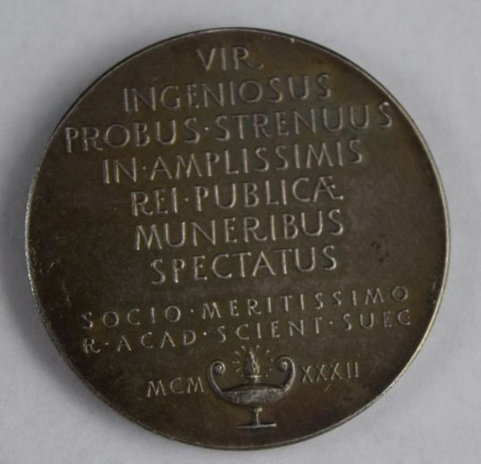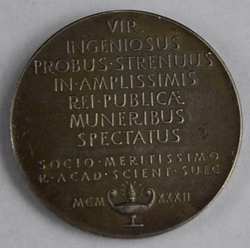 Medals are presented to Swedish and foreign citizens for outstanding contributions that benefit society and also in commemoration of significant people or important events. We did not dare test but it appears to besilver. Reads: "GUSTAVUS FRIDERICUS WIRSTEN NAT MDCCLXXIX OB MDCCCXXVII", "VIR INGENIOSUS PROBUS STRENUUS IN AMPLISSIMIS REI PUBLICAE MUNERIBUS SPPECTATUS", "SOCIO MERITISSIMO R ACAD SCIENT SUEC", and "MCM XXXII". Measures1 1/4" (3.2cm) in diameter. Weighs 15.4g. U.S. SHIPPING $15 PLUS INSURANCE