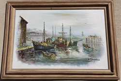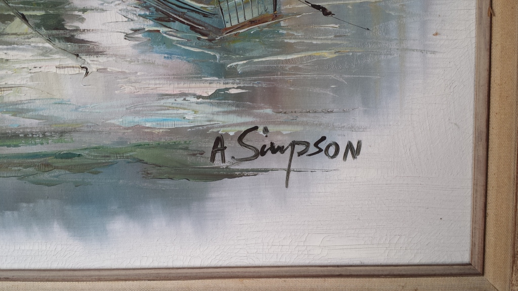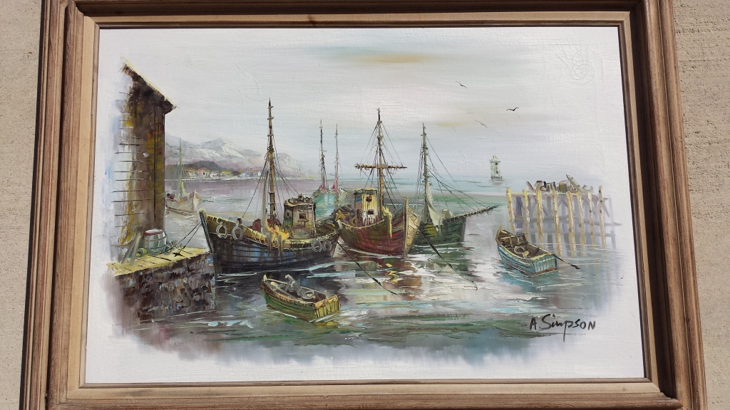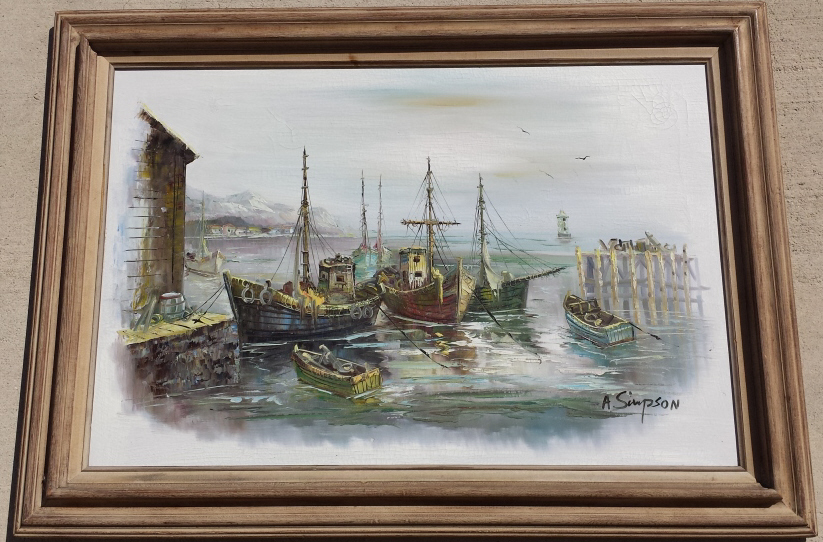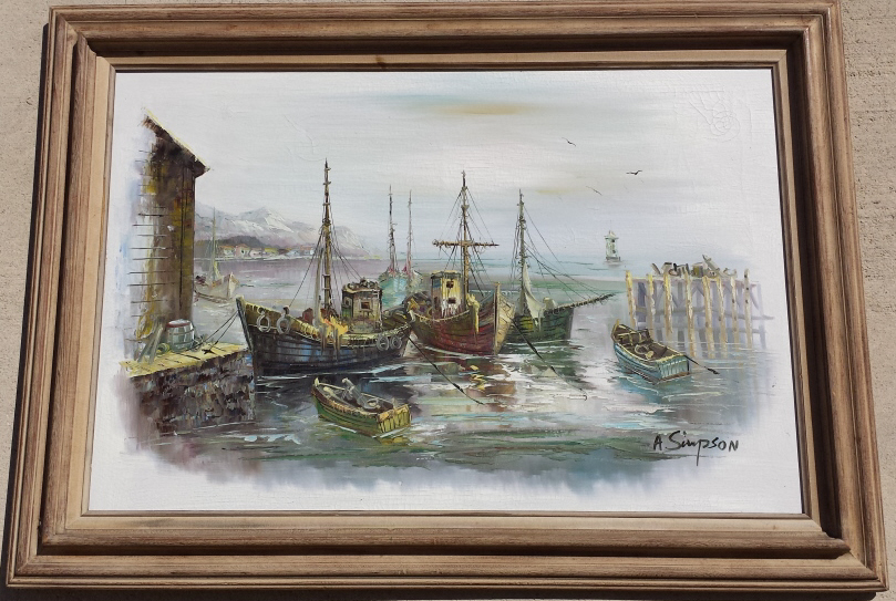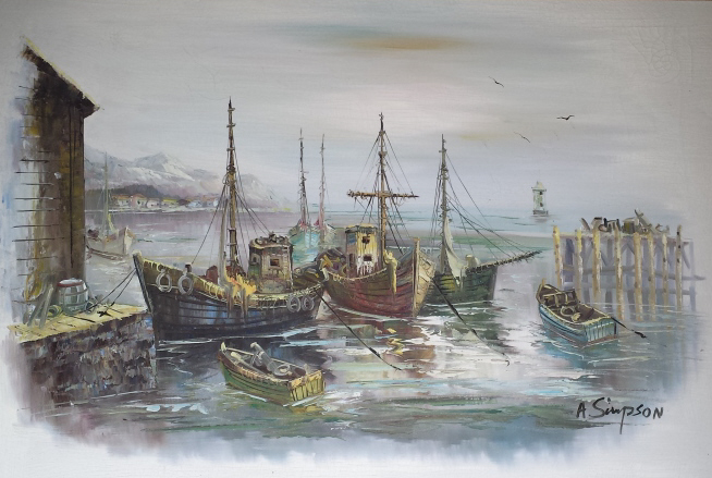 245 - BOAT HARBOR SCENE OIL ON CANVAS SIGNED A SIMPSON
