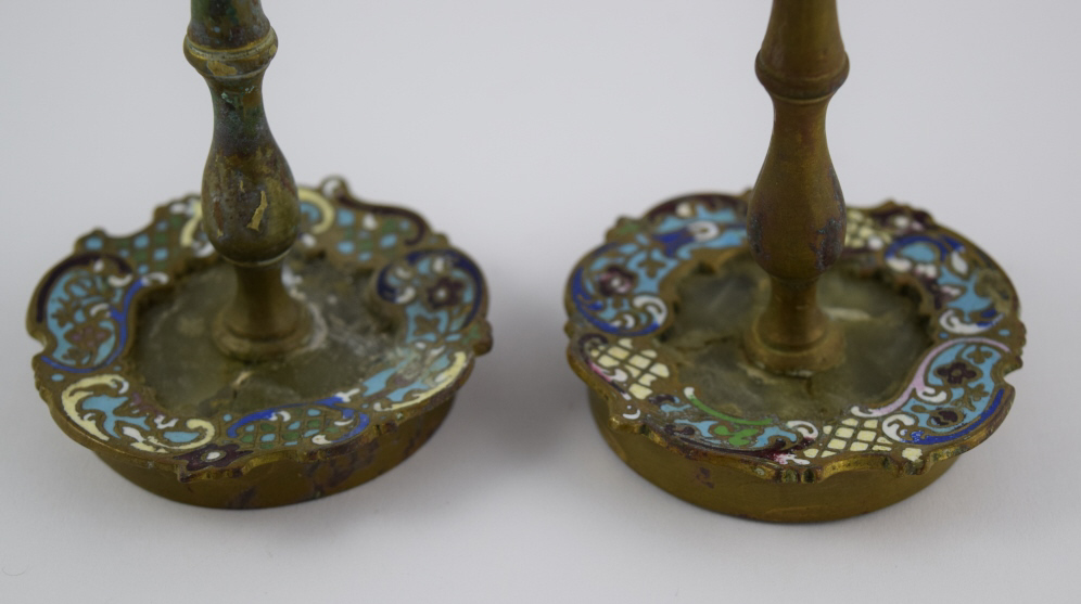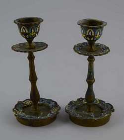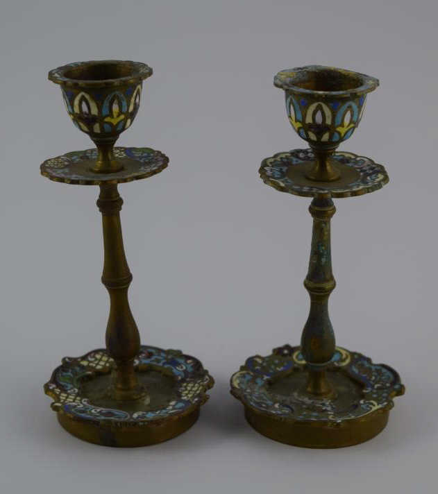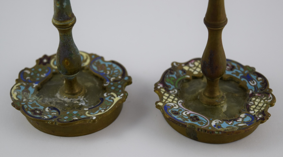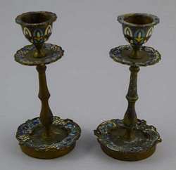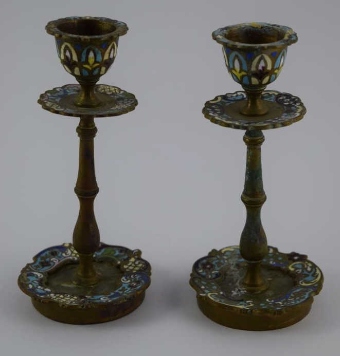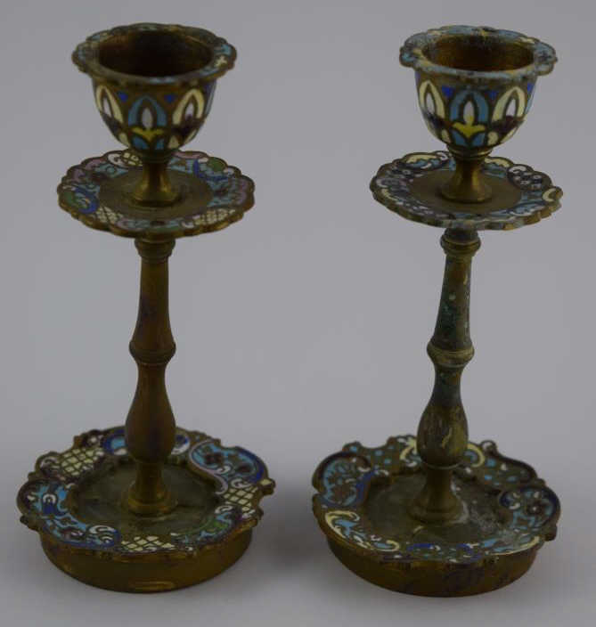 254 - CLOISONNE ENAMEL CANDLESTICK HOLDERS