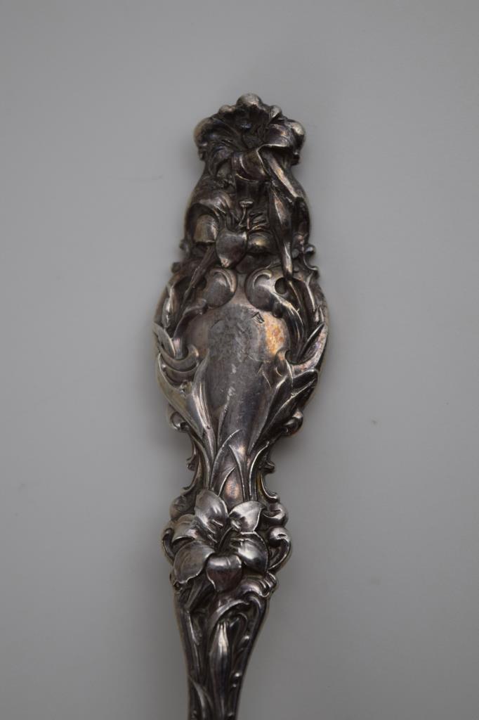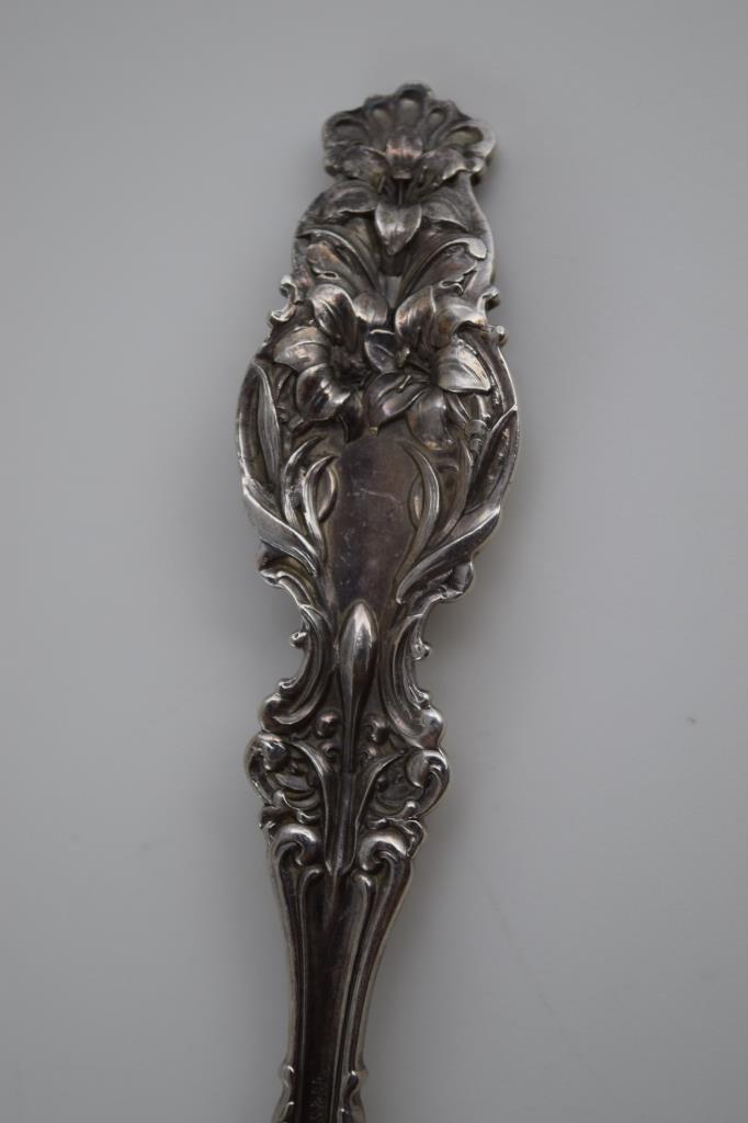 1874-1930. Sterling silver. Measures 7 3/4" (19.7cm) long x 2 1/2" (6.4cm) wide. Weighs 80.7g (2.6 ounces troy). U.S. SHIPPING $15 PLUS INSURANCE