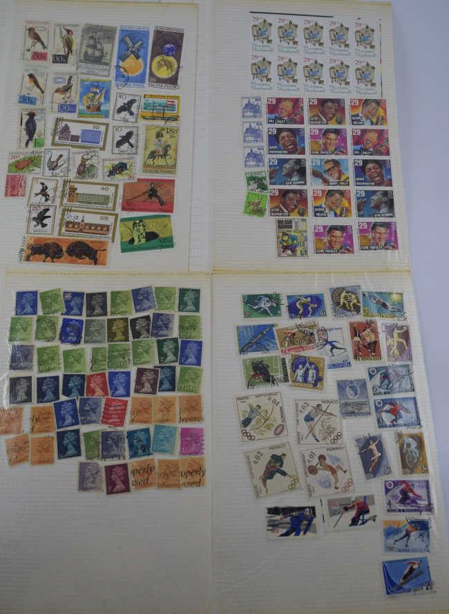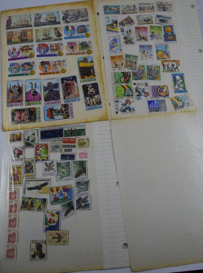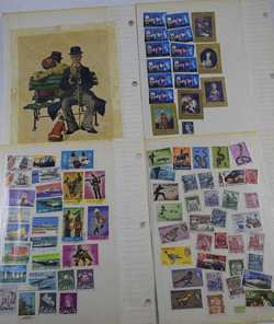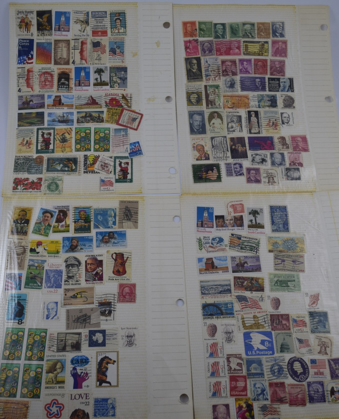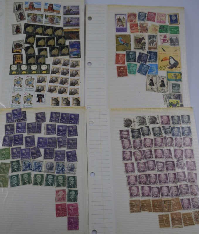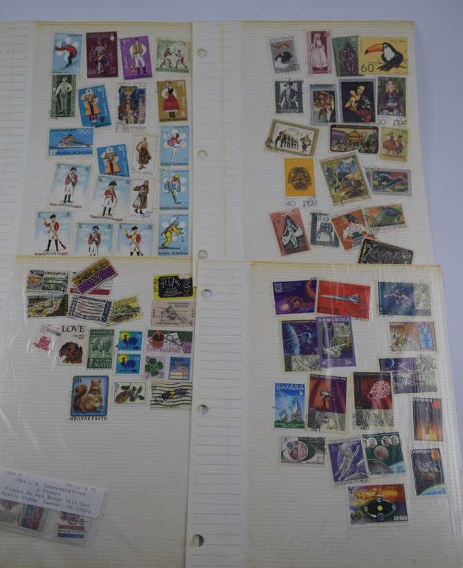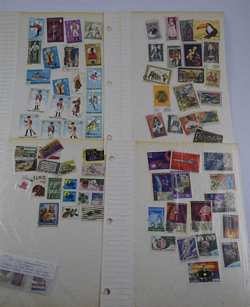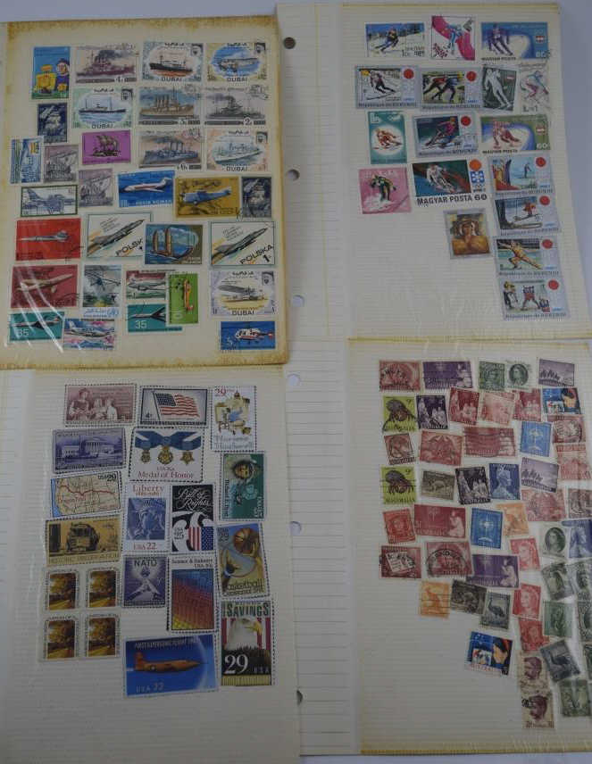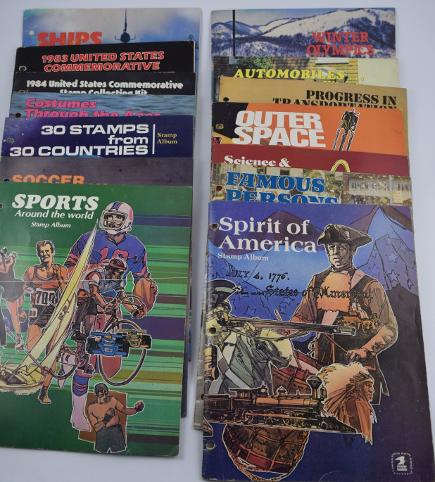 Includes: Spirit of America, Famous Persons, Science & Scientists, Outer Space, Progress in Transportation, Automobiles- A World on Wheels, Winter Olympics, Sports Around the World, Soccer-The worlds most popular sport,30 Stamps frpm 30 Countries, 1983 US Commemorative Stamp Collecting Kit (mostly empty), and Ships (mostly empty). Followed by over 60 pages of assorted used and unused stamps (over $36 face value in unused U.S.stamps alone) from all over the world. 18 full pages of stamps not shown in photos. Measures 12" (30.5cm) long x 10" (25.4cm) wide x 2 1/2" (6.4cm). Weighs 5lbs., 10oz. THIRD PARTY SHIPPING REQUIRED