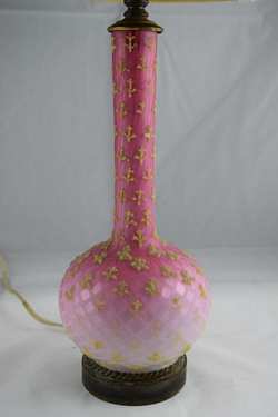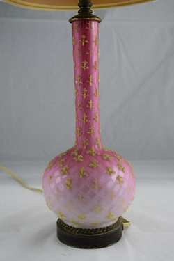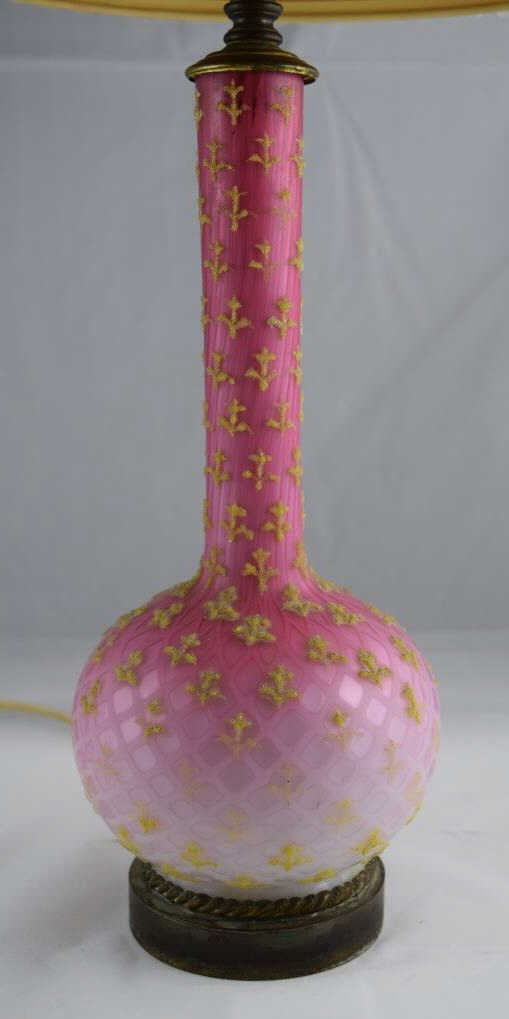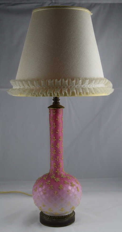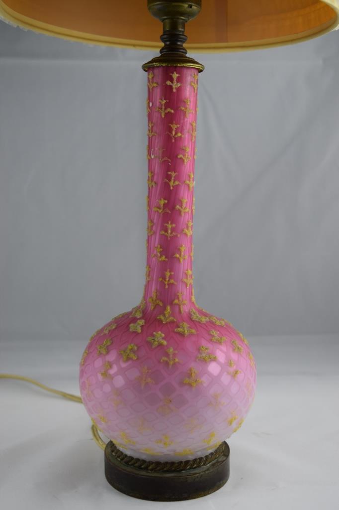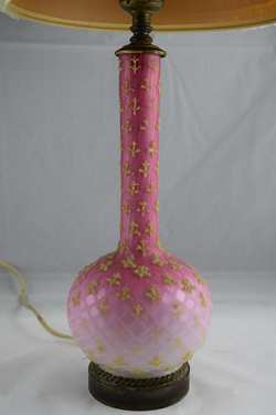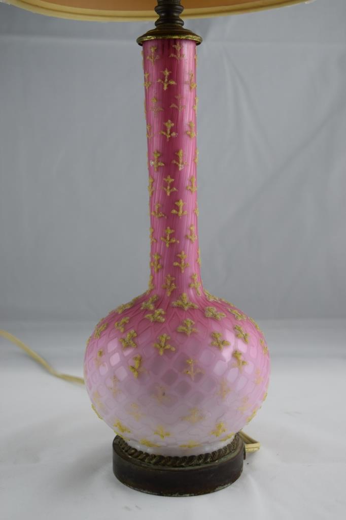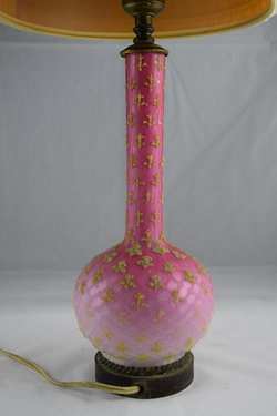 263 - PINK IRIDECENT SATIN GLASS LAMP VASE w/ SHADE