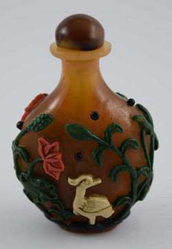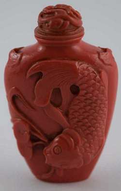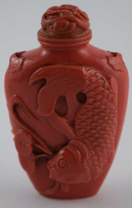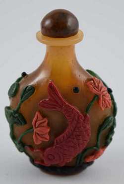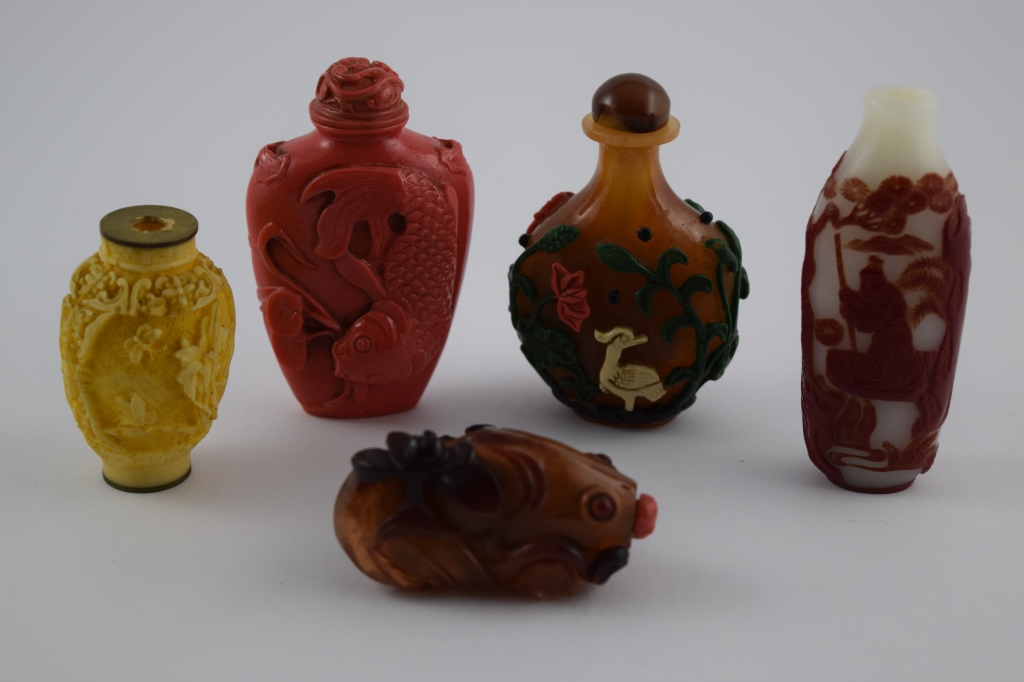 271 - 5 CHINESE FISH & FLORAL CARVED SNUFF BOTTLES