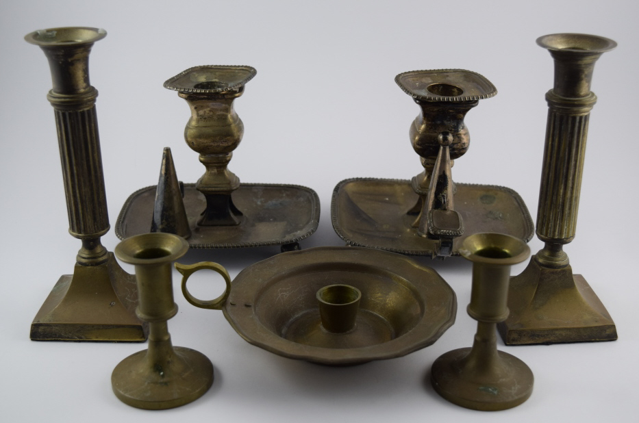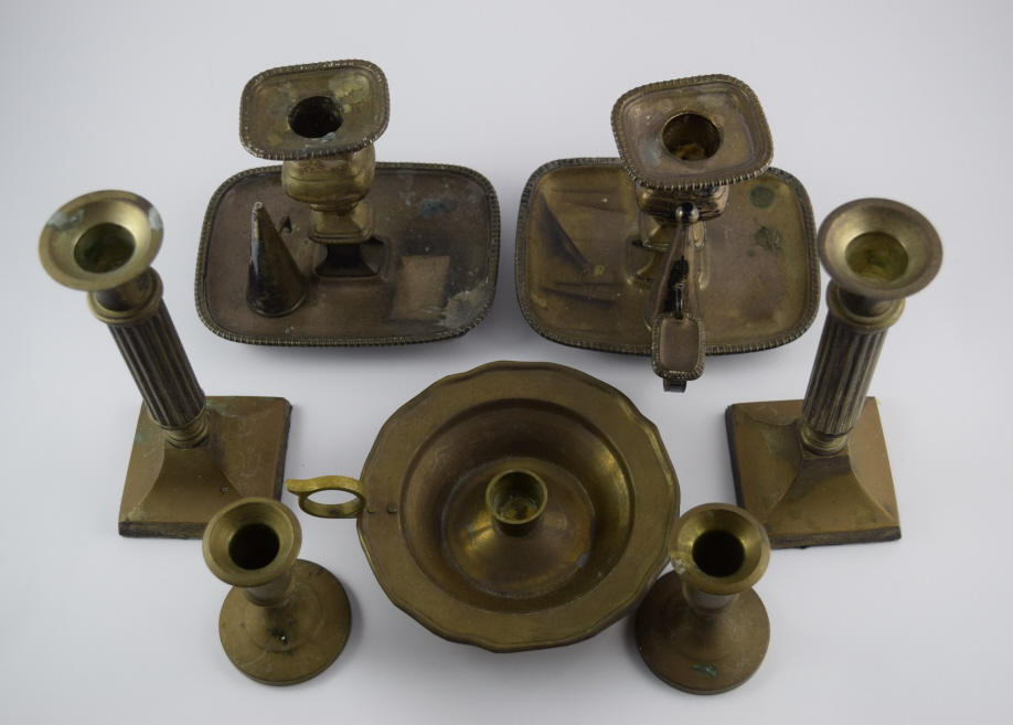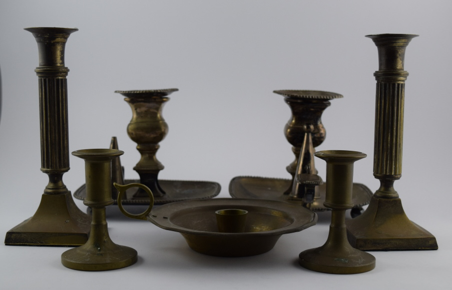 274 - LOT OF SILVERPLATE CHAMBER & CANDLESTICK HOLDERS