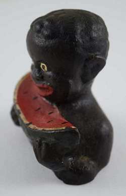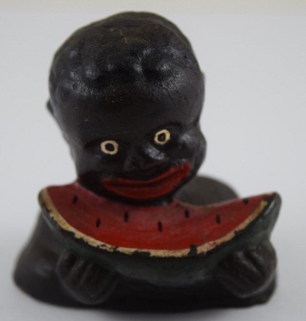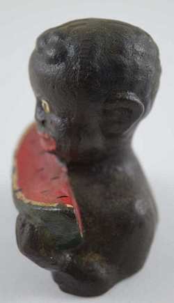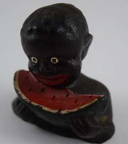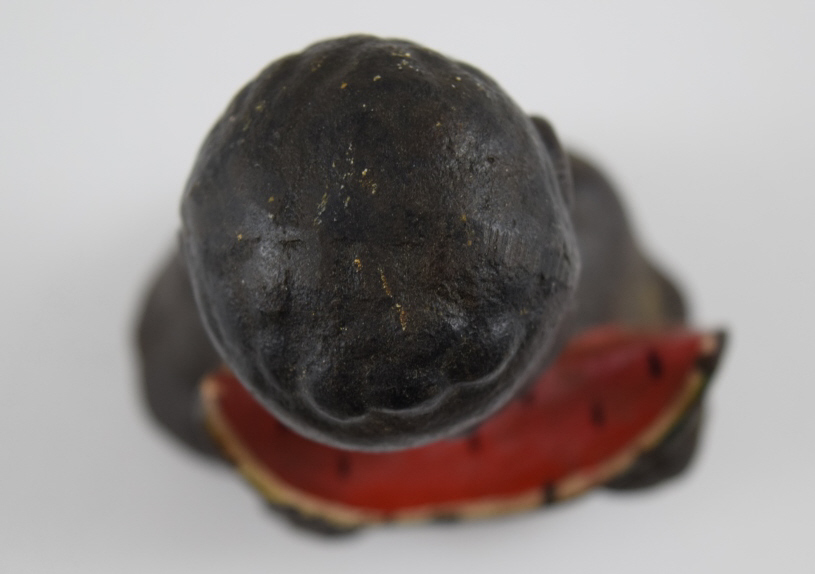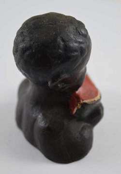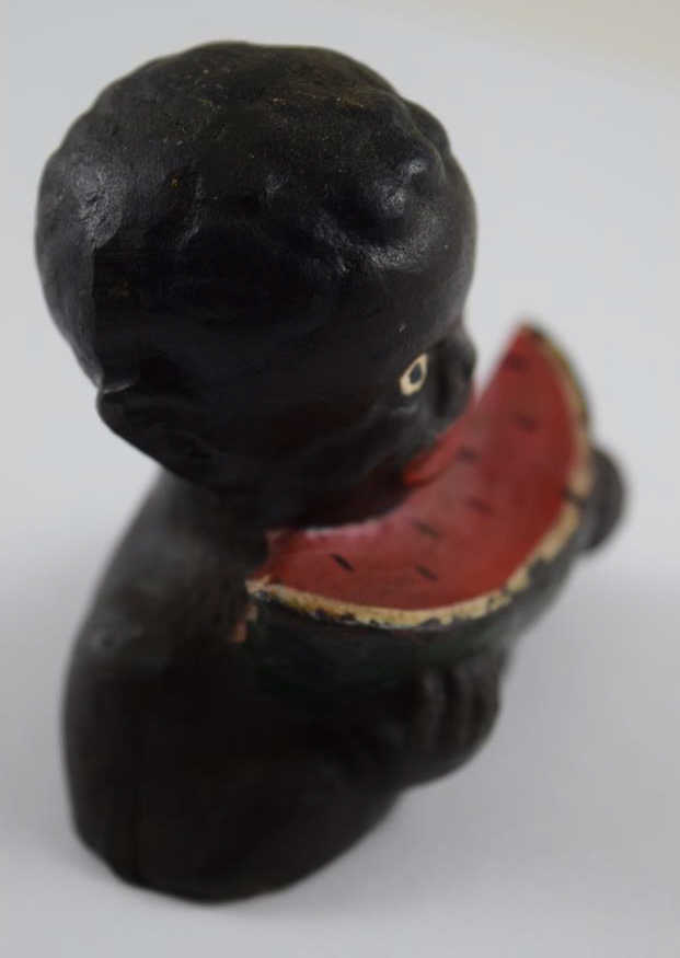 Depicting a boy with watermelon. Measures 2 1/2” (6.35cm) long x 2 1/4” (5.71cm) high x 1 1/2” (3.81cm) deep. Weighs 15.2oz. U.S. SHIPPING $15 PLUS INSURANCE