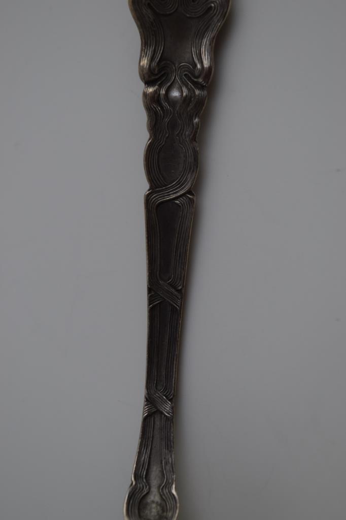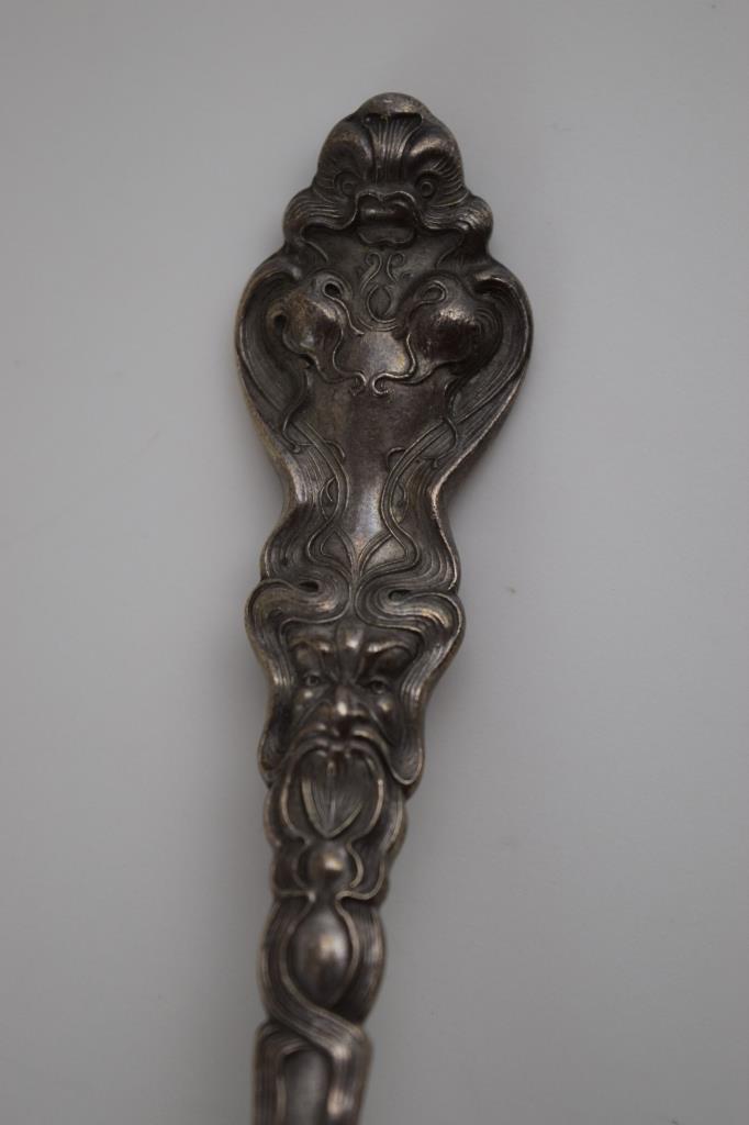 Antique sterling silver. Newark, New Jersey. 1904. Measures 8 1/4" (20.9cm) long x 1 3/4" (4.4cm) wide. Weighs 72.5g (2.3 ounces troy). U.S. SHIPPING $15 PLUS INSURANCE