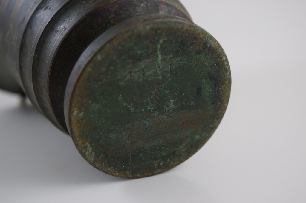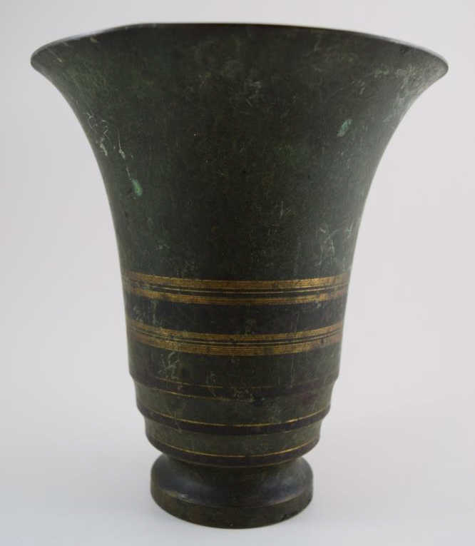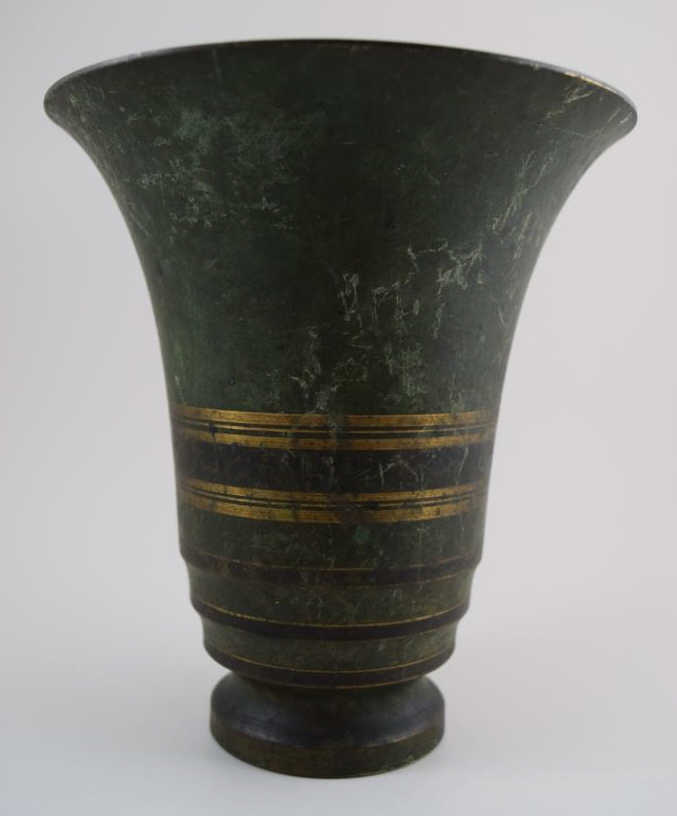 Signed "Carl Sorensen". Marked "1141" and "Bronze" to bottom. Measures 7" (17.8cm) high x 6" (15.2cm) mouth x 2 1/4" (5.7cm) foot. Weighs 14oz. THIRD PARTY SHIPPING REQUIRED