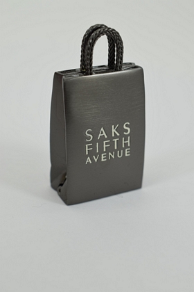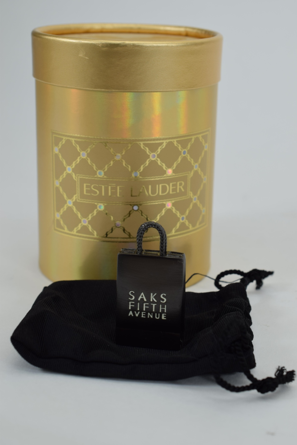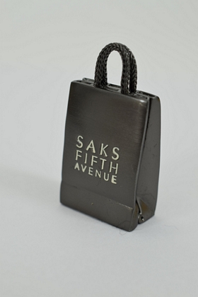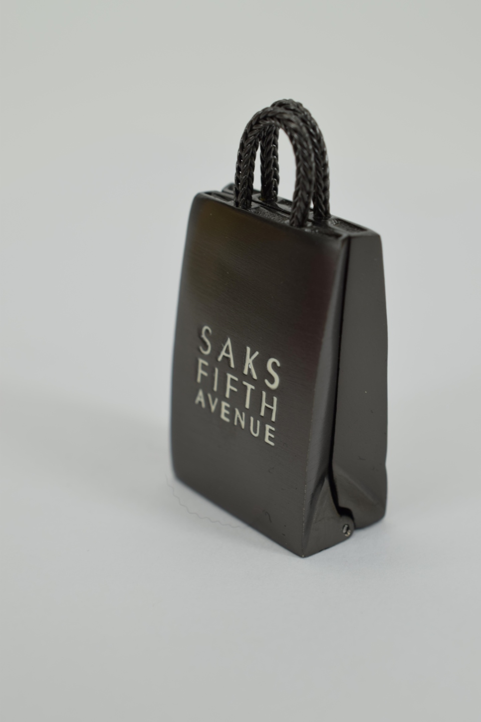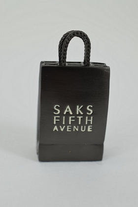 Saks Fifth Avenue compact solid perfume shopping bag. Measures 2” H. Weighs approx. 2oz.