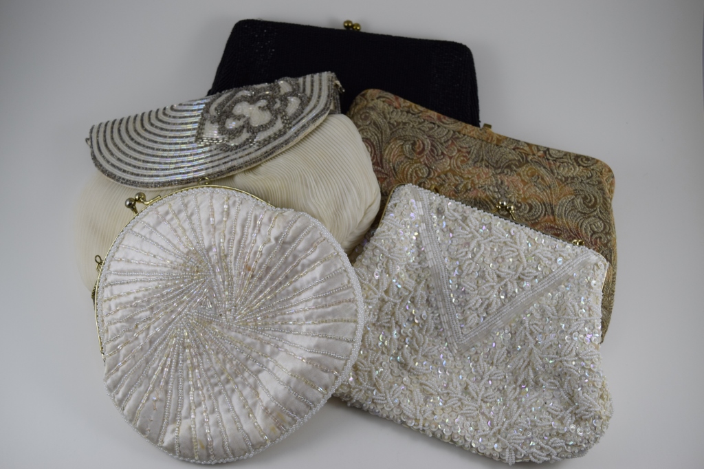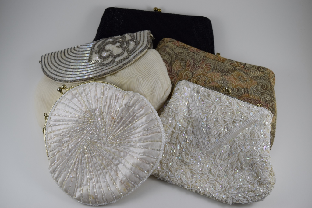 298 - LOT OF 5 VINTAGE BEADED HANDBAGS, CLUTCHES, PURSES