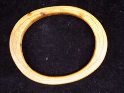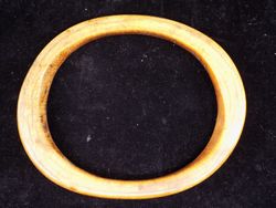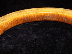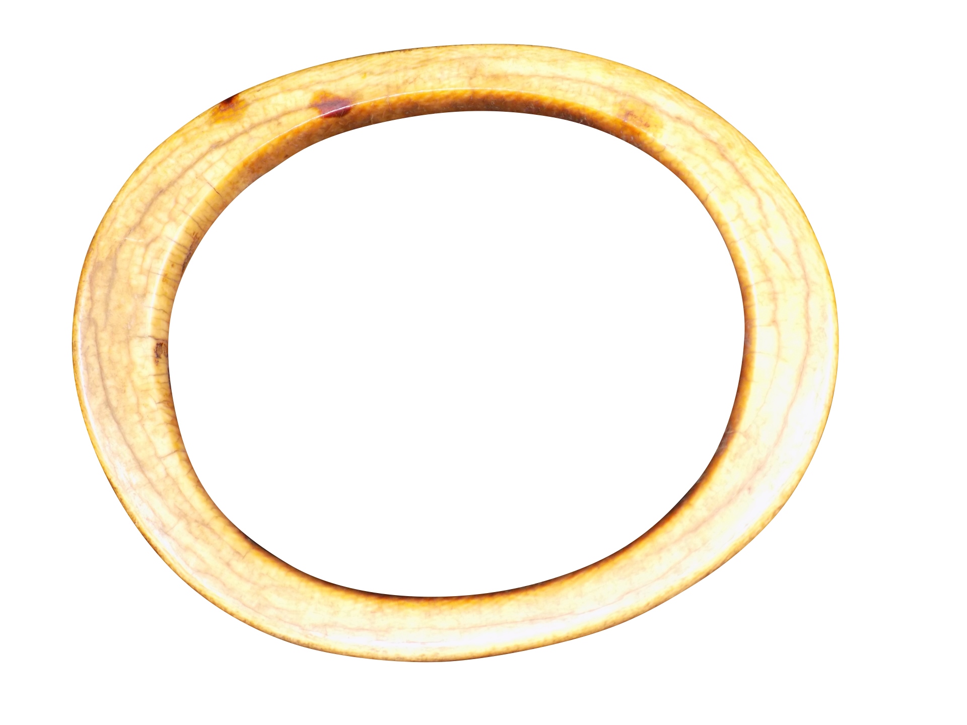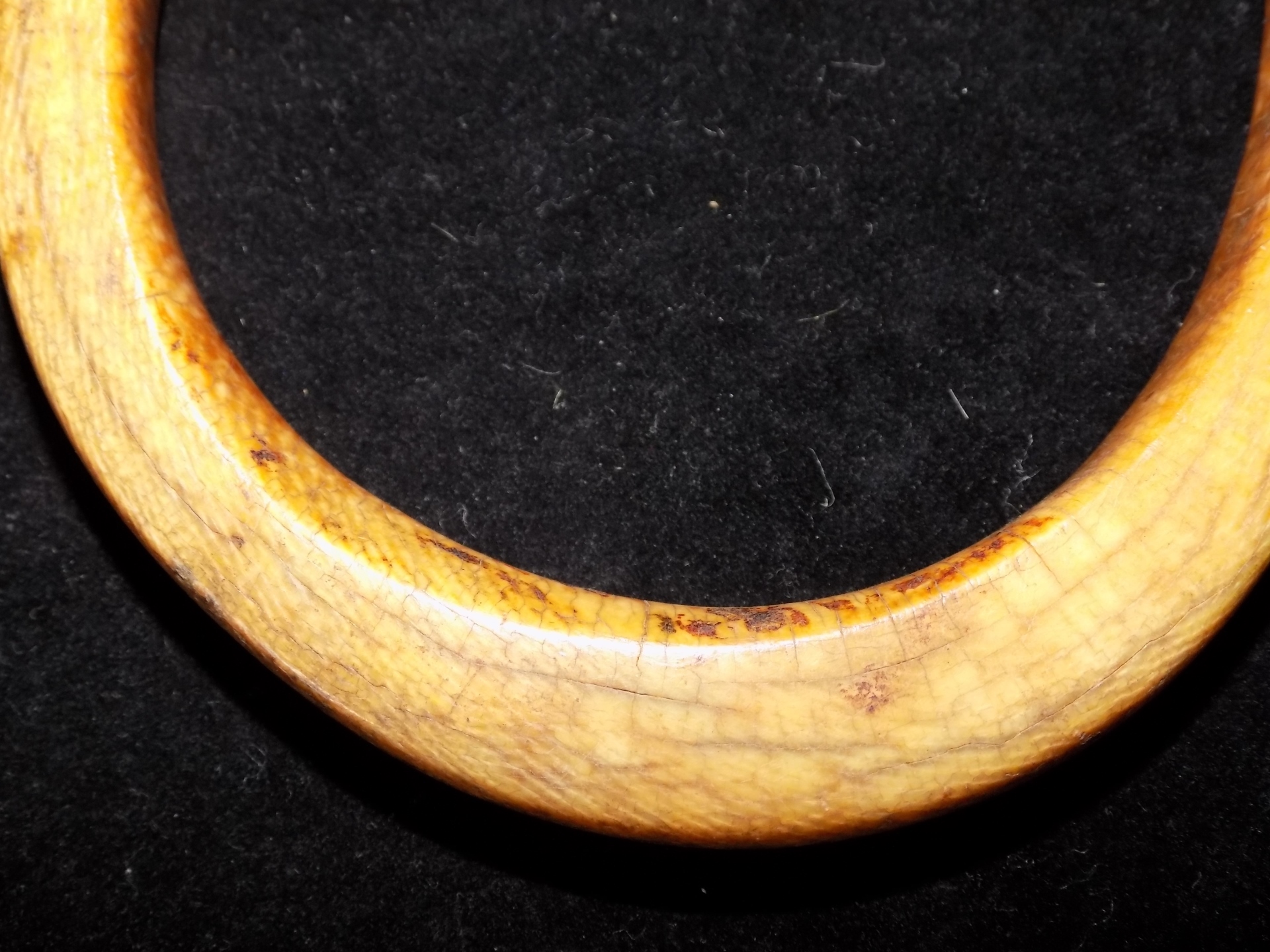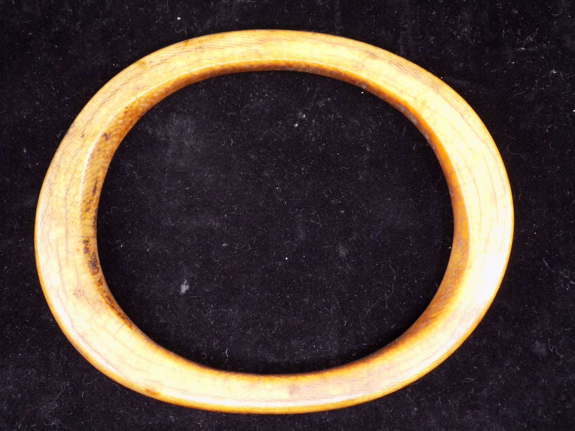 Antique Carved Ivory Bracelet, D.R. Congo, Azande, Light Tan Patina, Natural Veins. Measures 5 1/4" x 1/2". Weighs 6oz. This item is not available for international purchase or shipping. Please be aware of current domestic regulations and bid (or do not bid) accordingly.