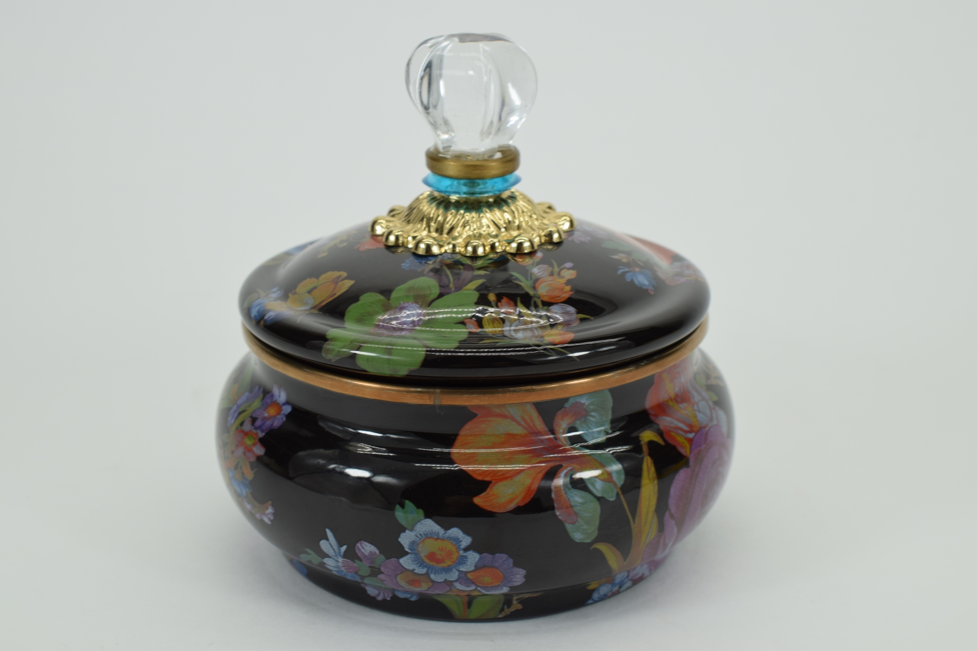435 - MACKENZIE CHILDS COVERED FLOWERED DISH