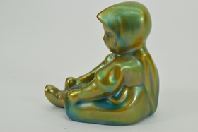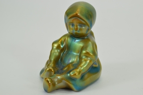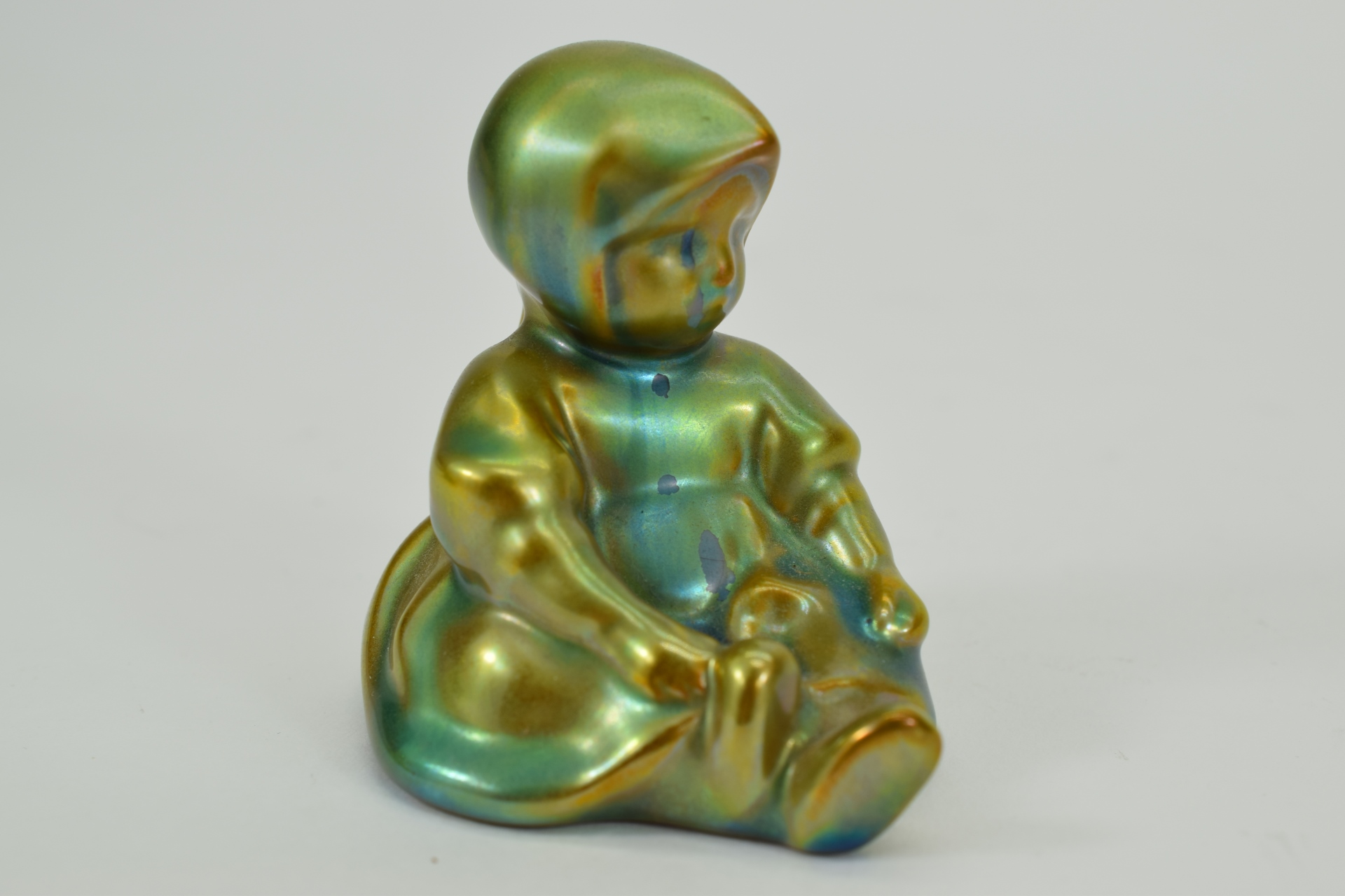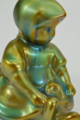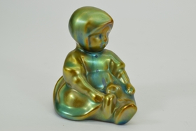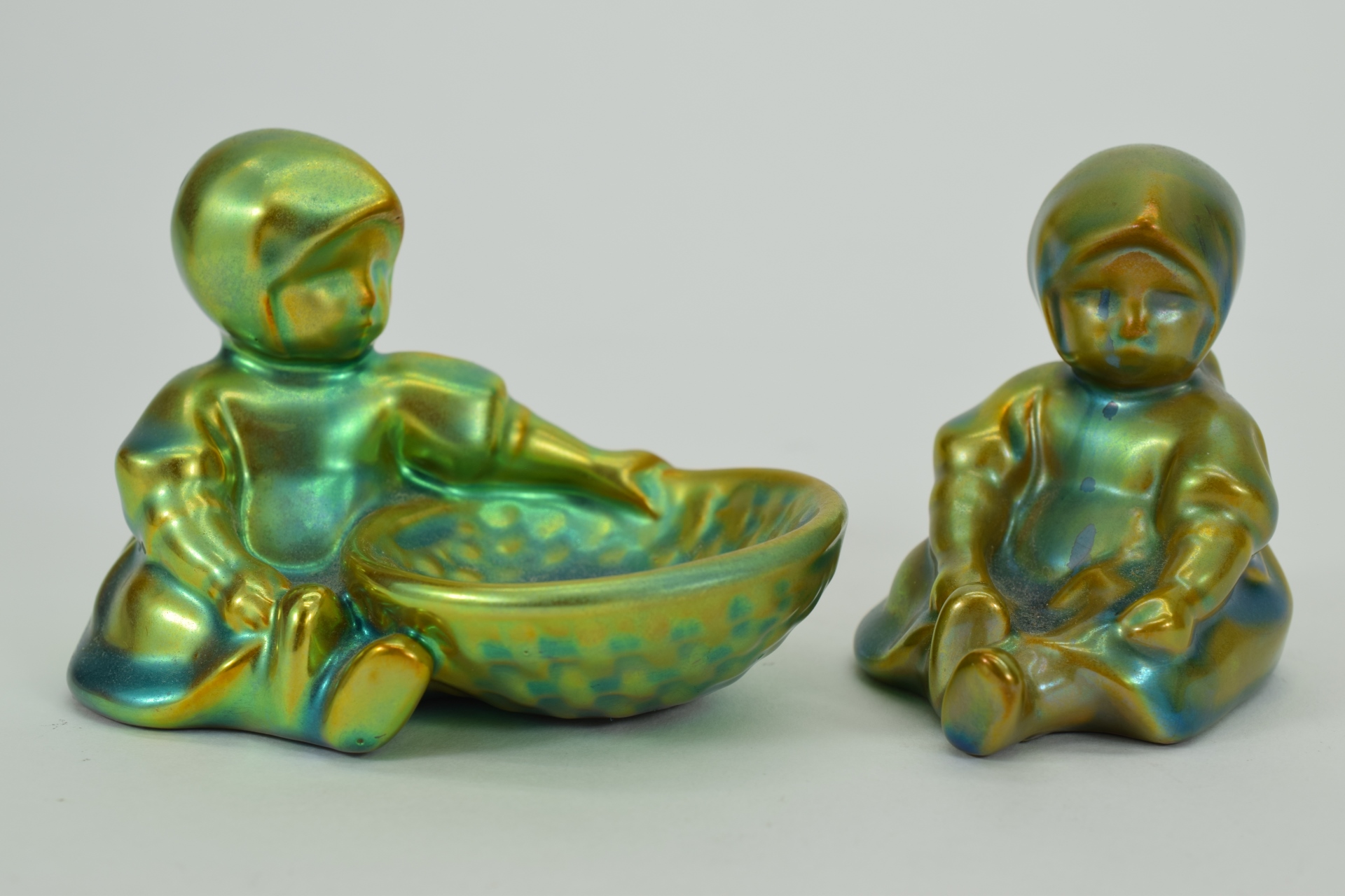 438 - 2 GREEN/YELLOW ZSOLNAY PORCELAIN CHILDREN FIGURES